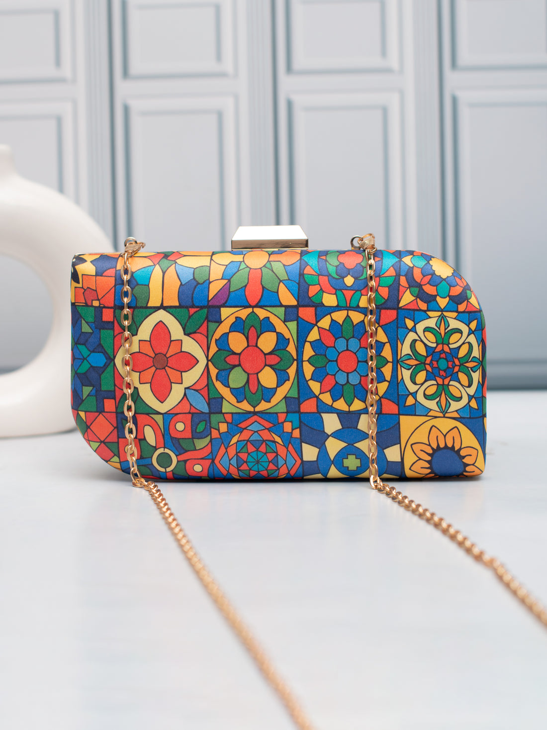 Artklim Blue Based Traditional Pattern Printed Clutch