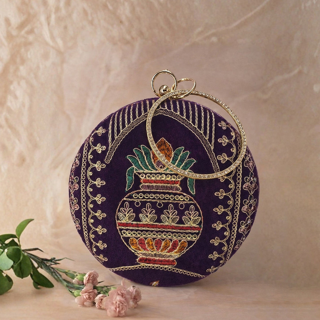 Artklim Royal Purple Round Embroidered Clutch