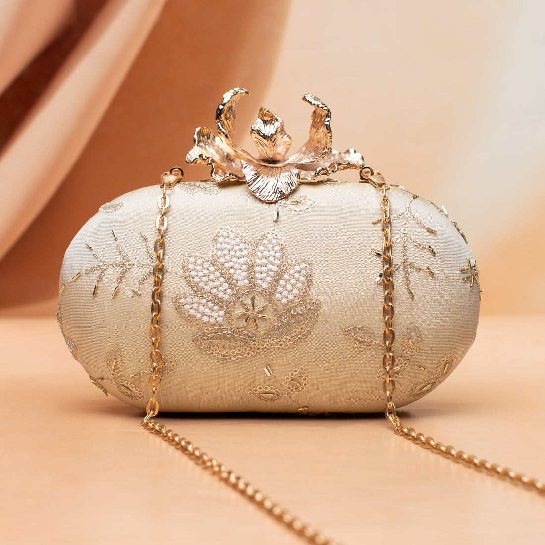 Artklim Golden Floral Embroidered Embroidered Clutch
