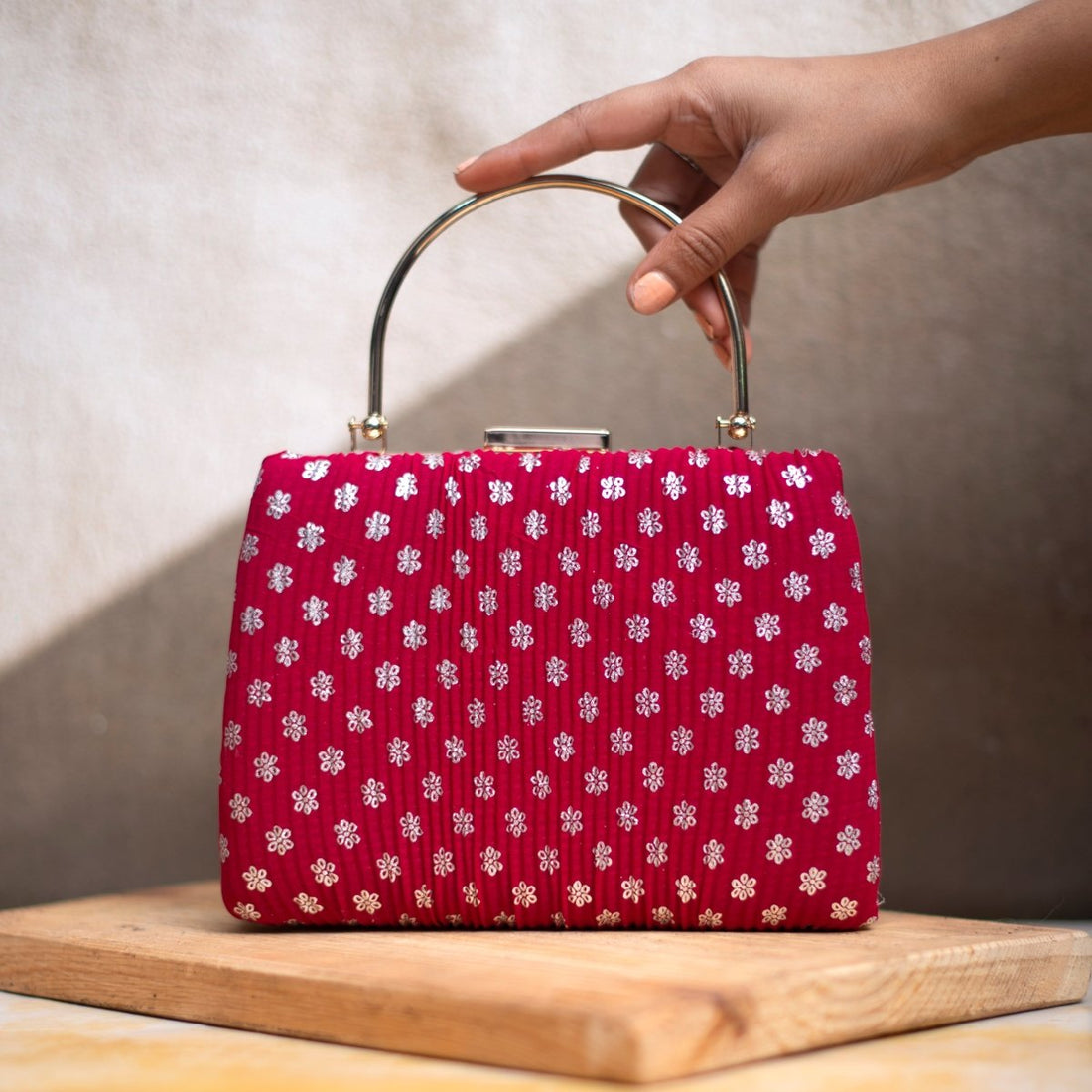 Material: Metal Frame with Plastic Hard Case with Fabric Over it. Outer: Machine Embroidery Fabric Inner: Raw...