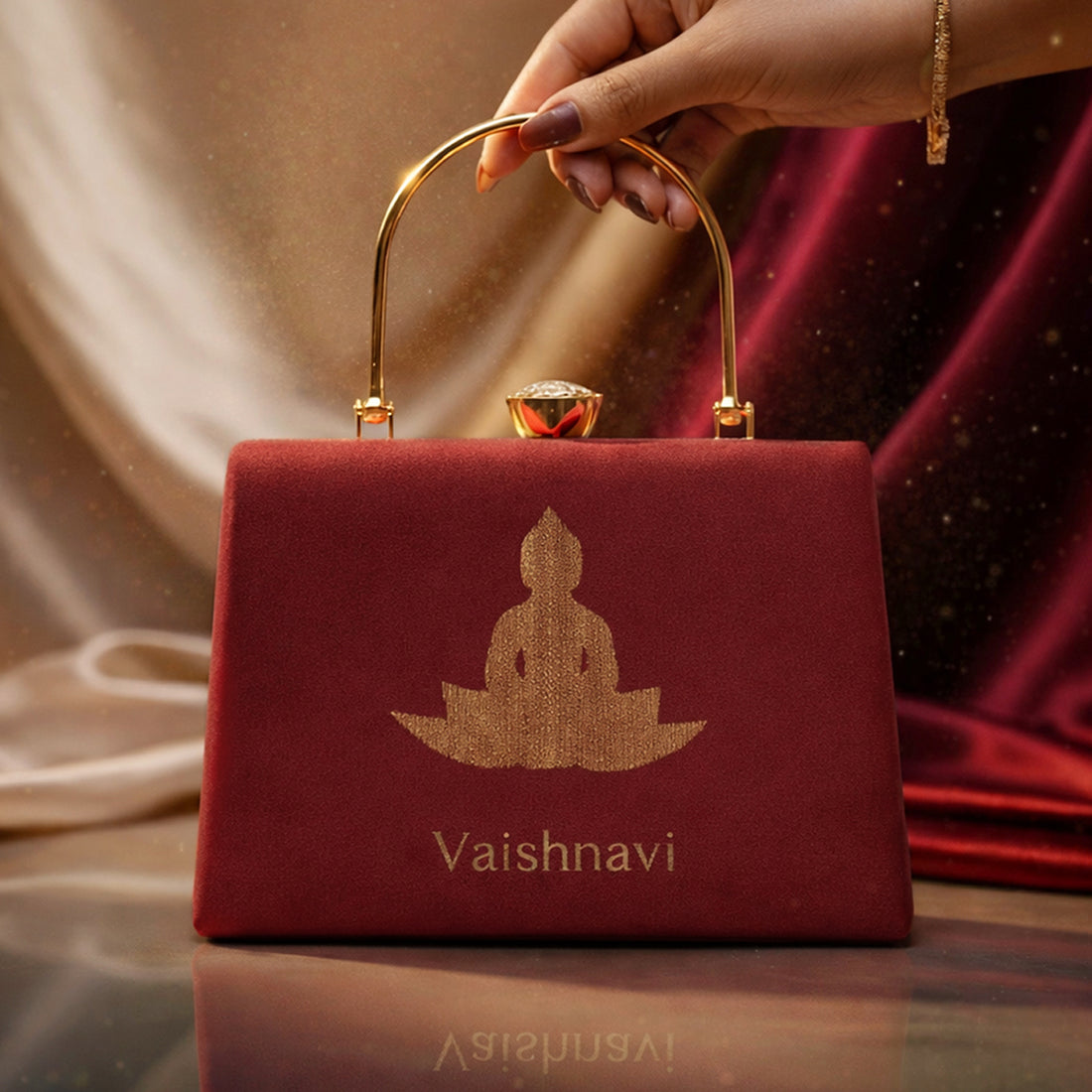 Artklim Buddha Embroidery Name Customized Clutch