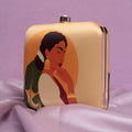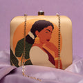 Artklim Beige Based Elegant Woman Portrait Printed Clutch