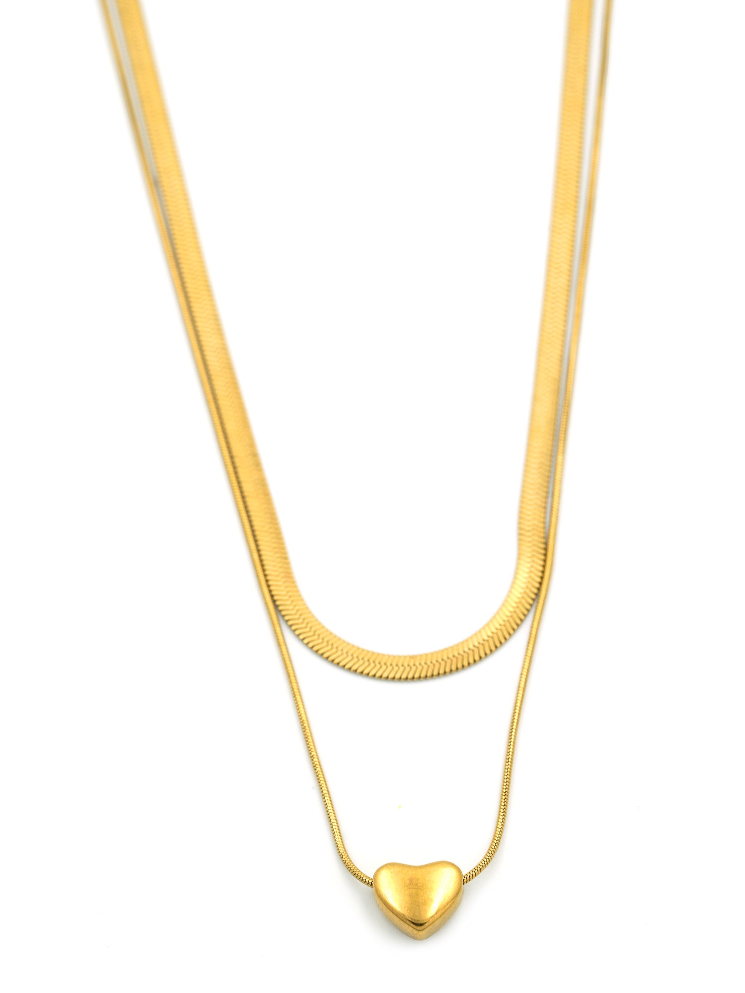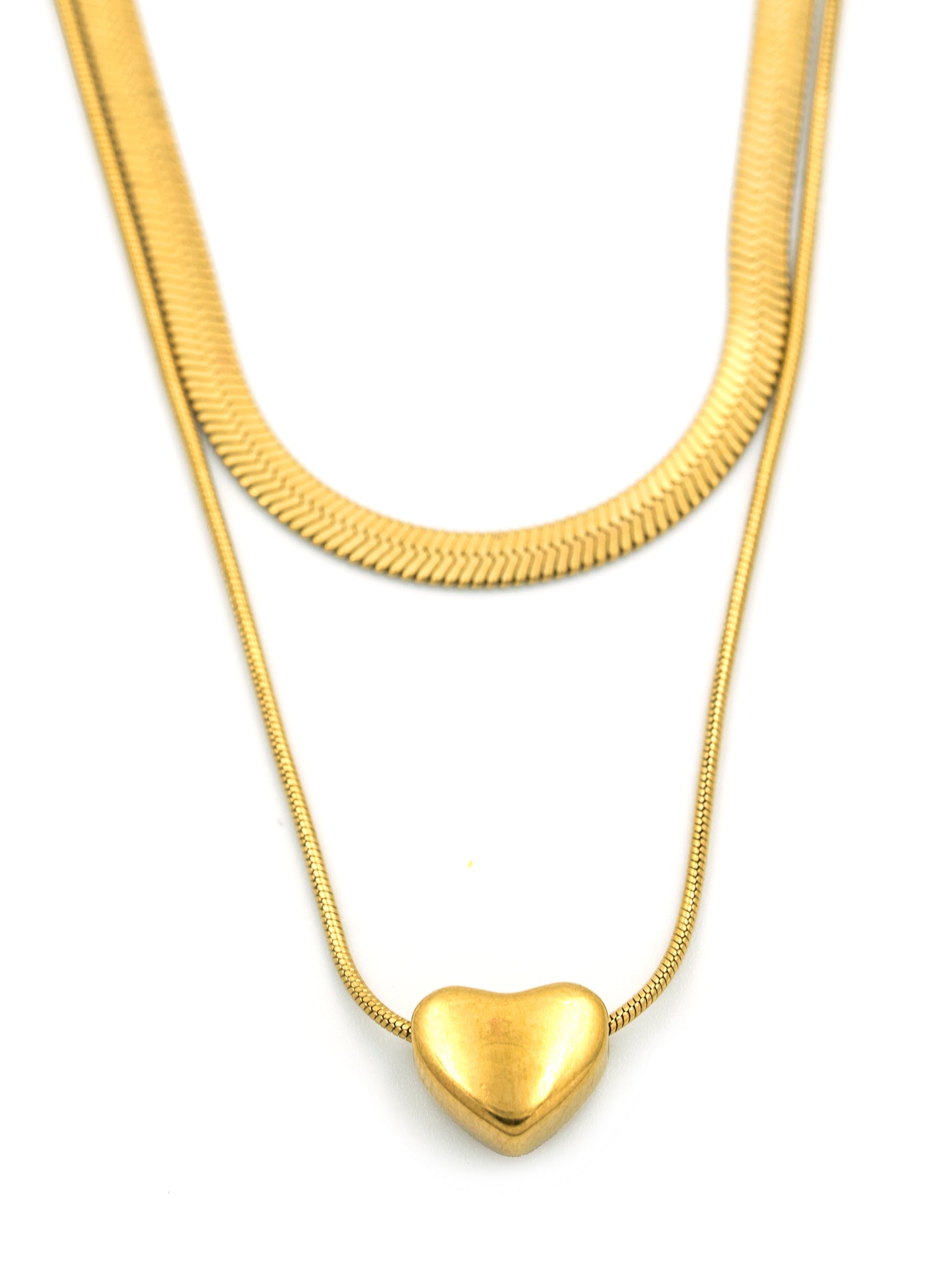 Arklim Golden Heart Herringbone Duo Anti Tarnish Pendant
