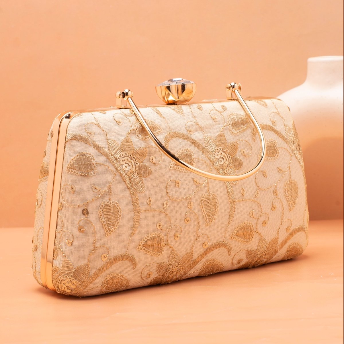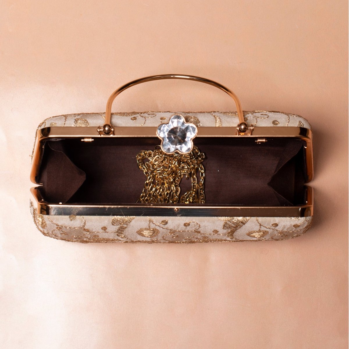 Artkim Off White Base Sequins And Threadwork Embroidery Clutch