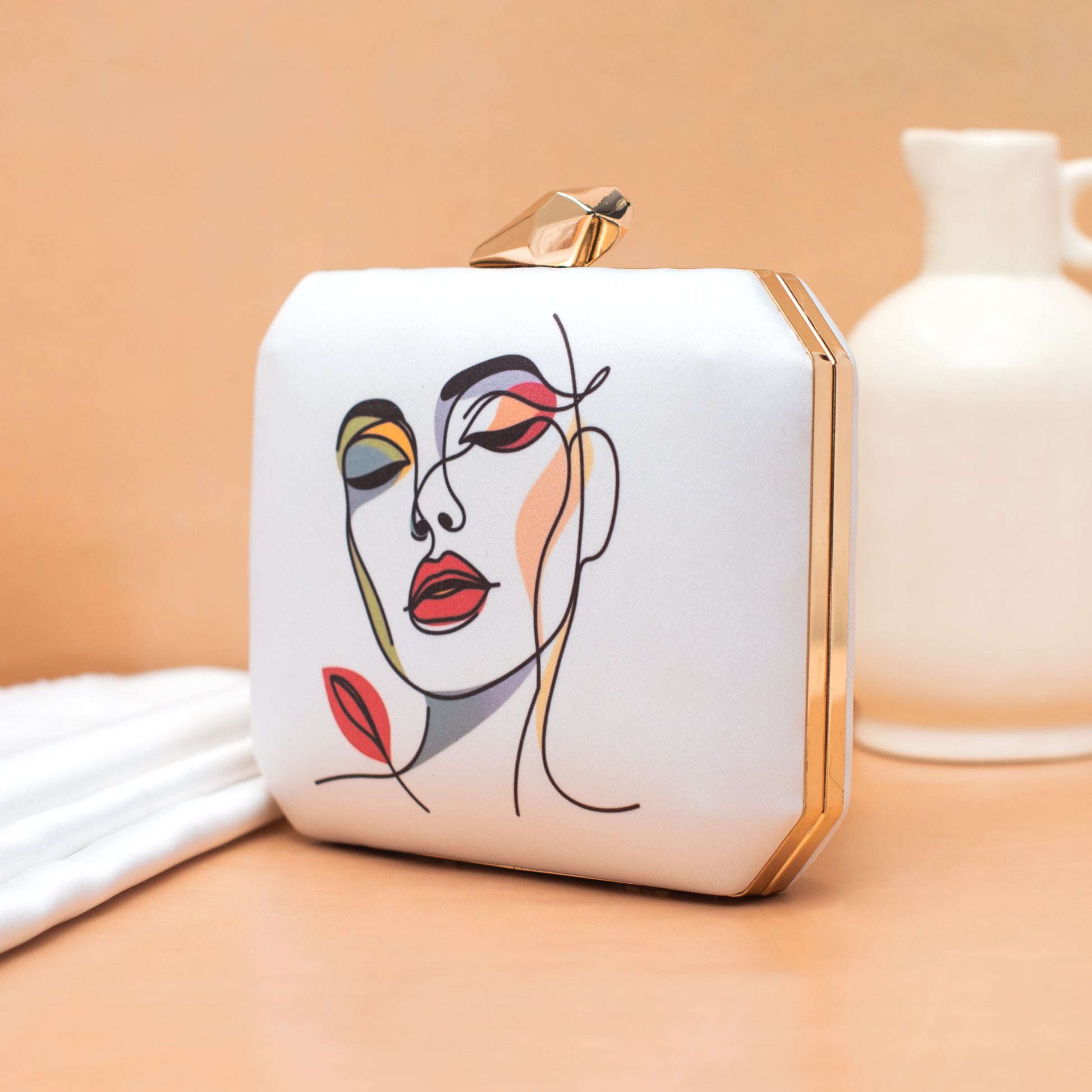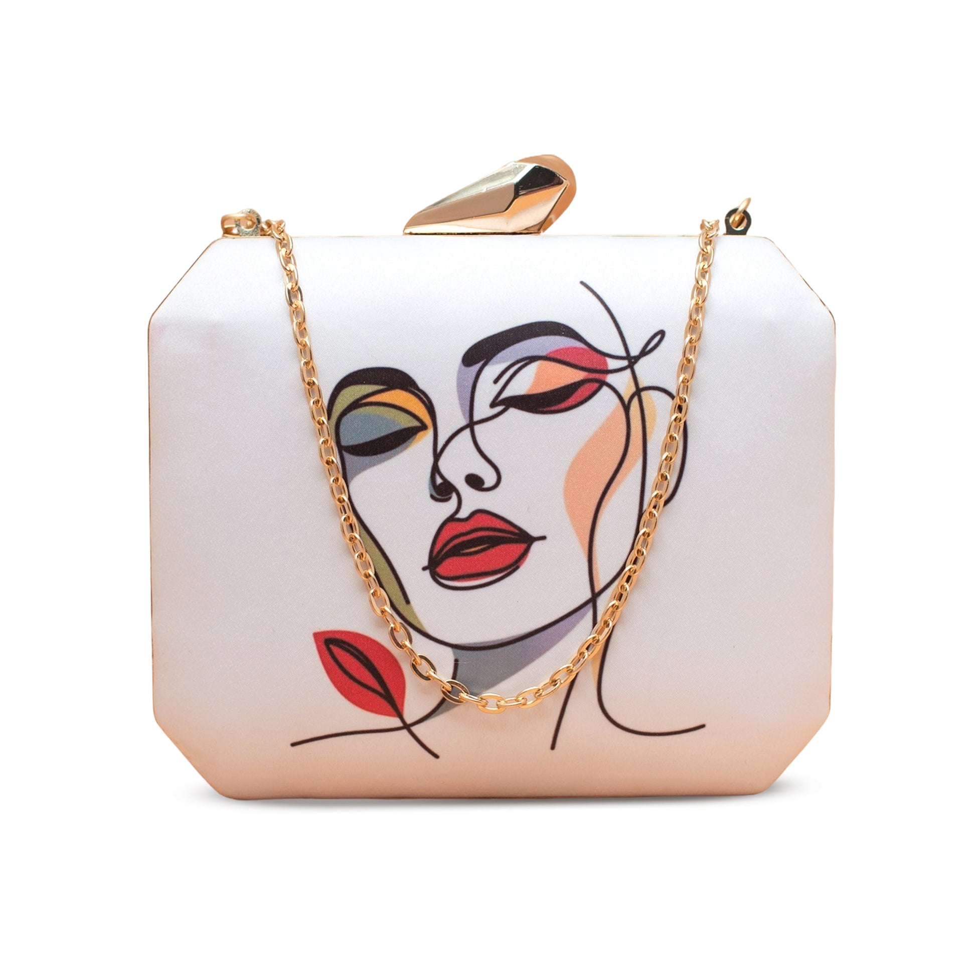 Add a burst of personality to every outing with these handcrafted clutches. Designed to blend fashion and art, each piece is a mini canvas—printed with vibrant illustrations, finished with a luxe hard-case body, and accented with a gleaming gold clasp and chain.