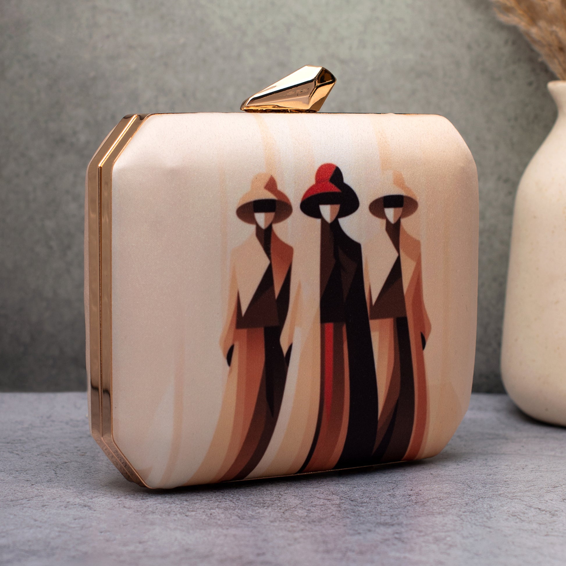 Add a burst of personality to every outing with these handcrafted clutches. Designed to blend fashion and art, each piece is a mini canvas—printed with vibrant illustrations, finished with a luxe hard-case body, and accented with a gleaming gold clasp and chain.