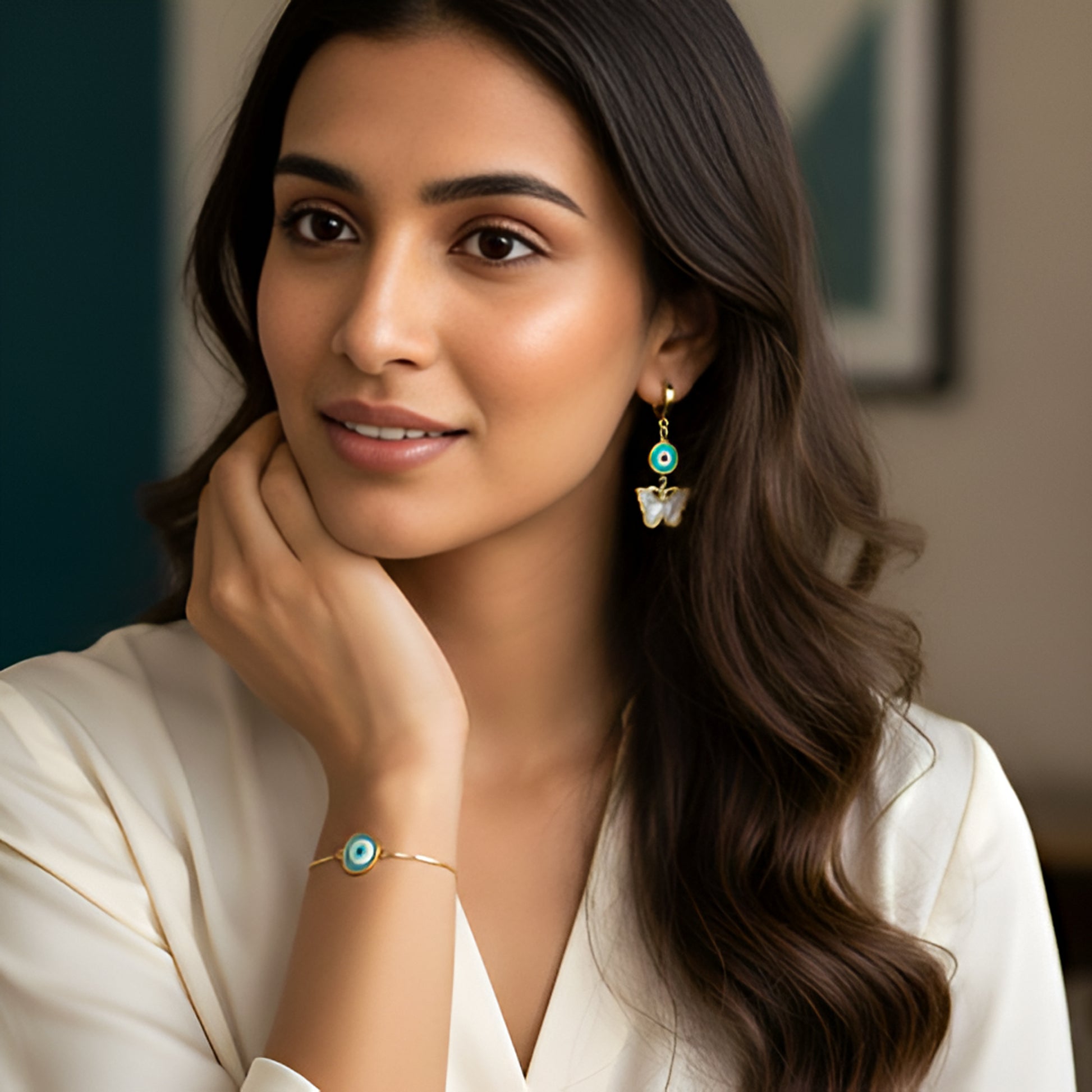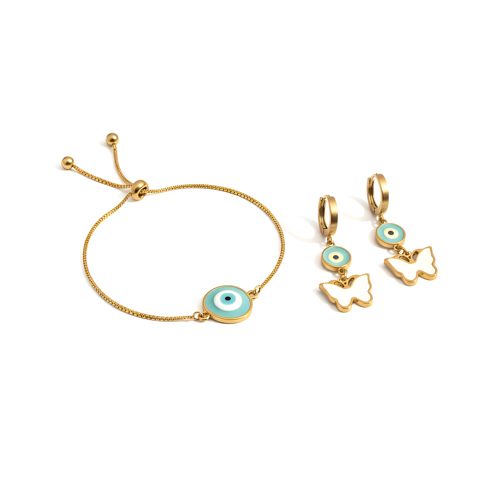 Artklim Anti Tarnish Evil Eye Bracelet & Butterfly Earrings Set
