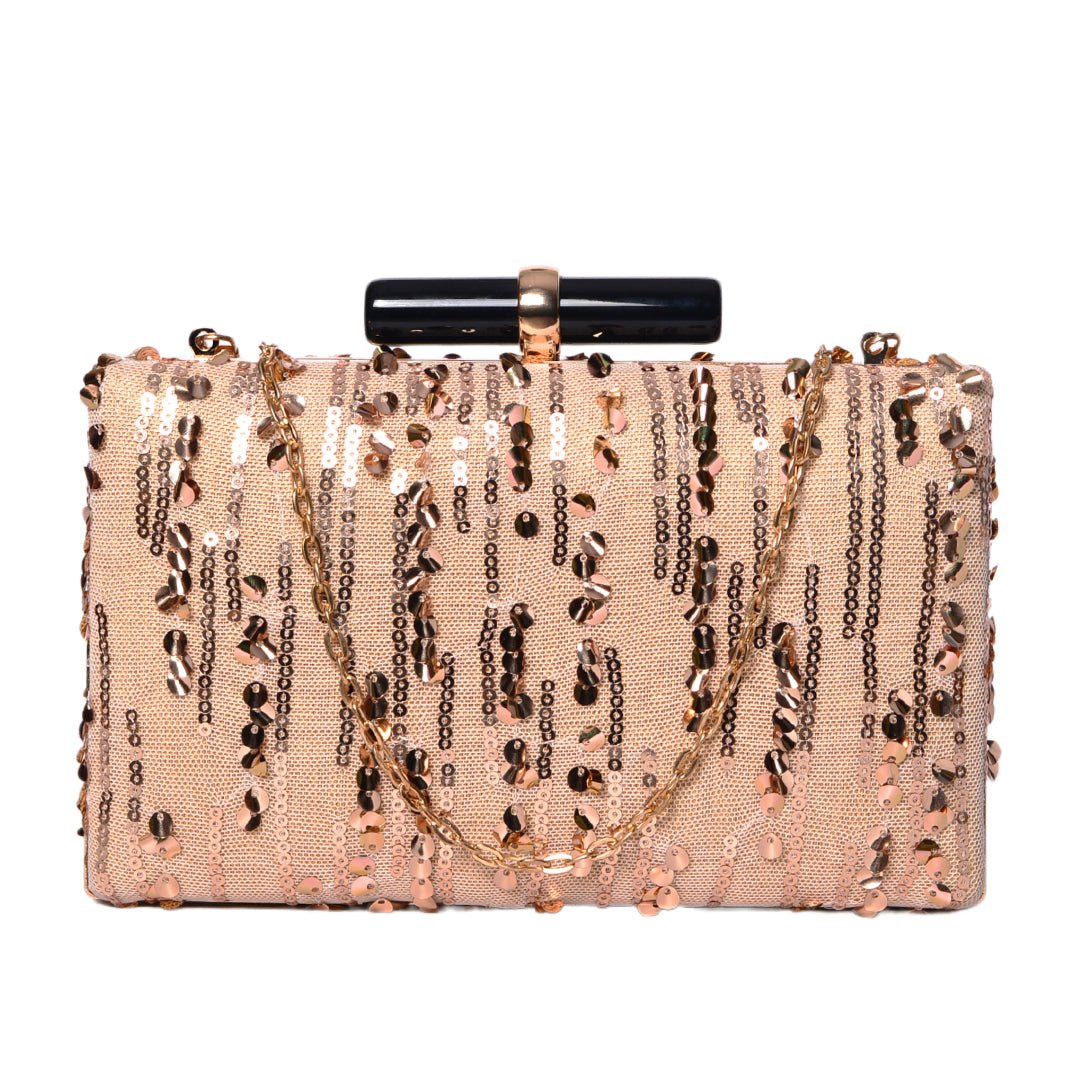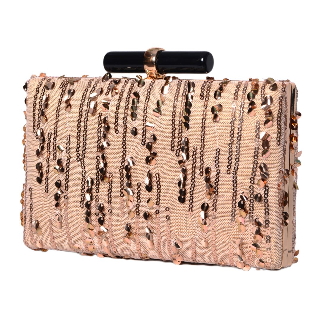 Artklim Baby Pink Clutch With Bright Golden Sequin Work