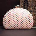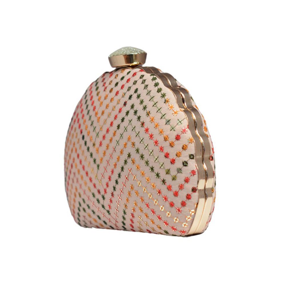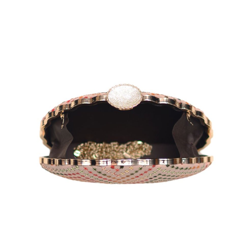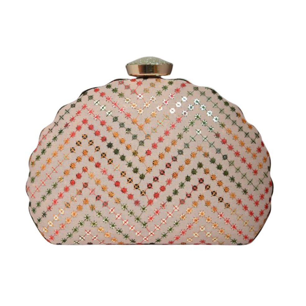 Artklim Beige Sequins Embroidered D-shape Clutch