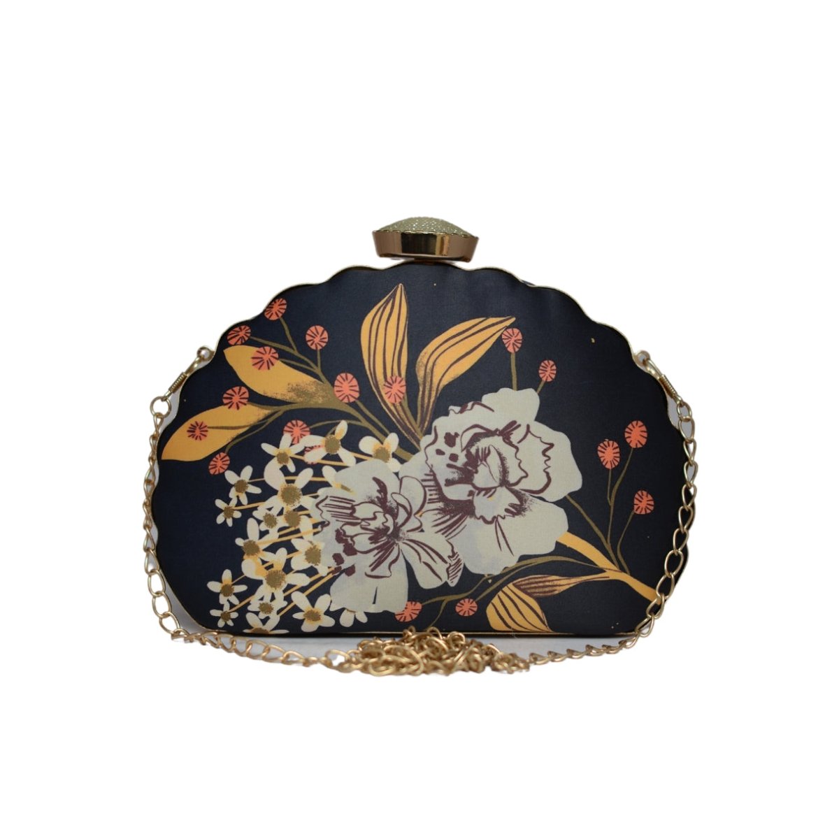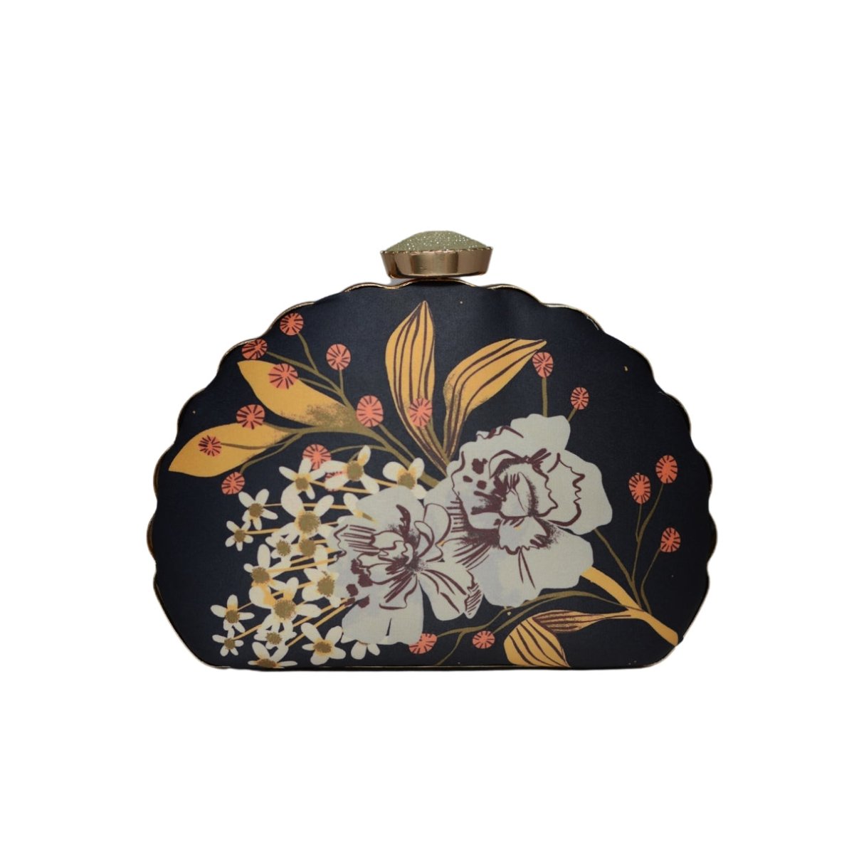 Artklim Black And White Flower Printed D-shape Clutch