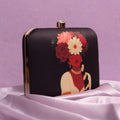Artklim Black Based Afro Woman Portrait Printed Clutch