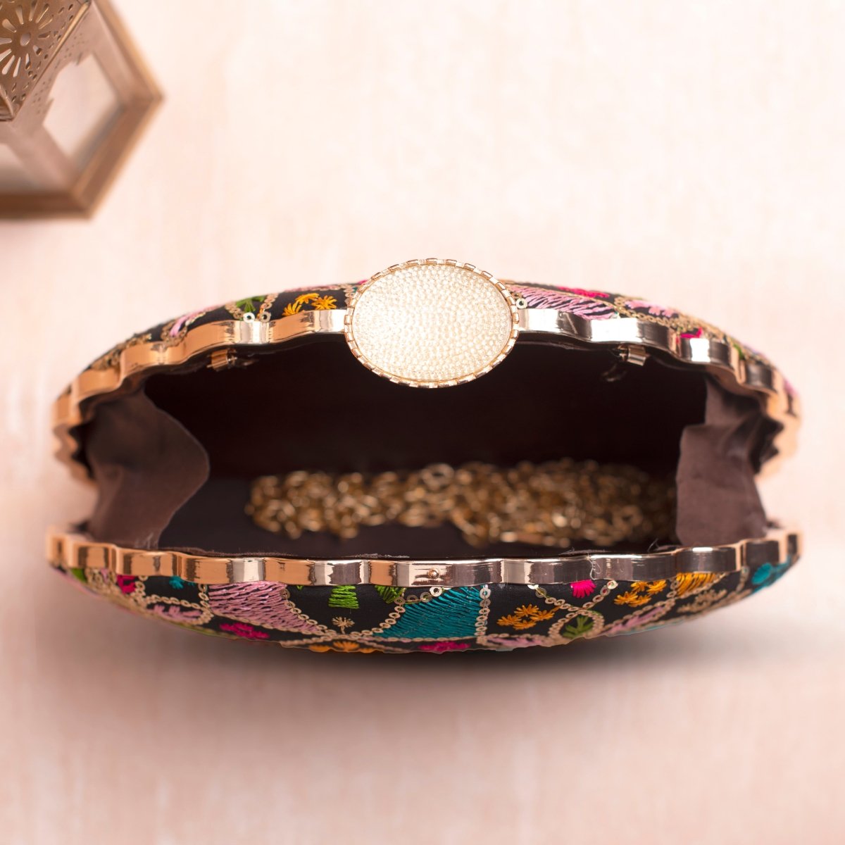 Artklim Black Base Multicolored Floral Embrodiery Clutch