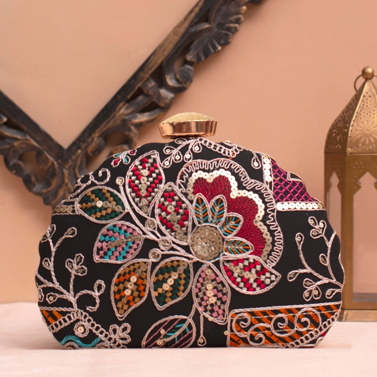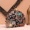 Artklim Black Base Multicolored Floral Embrodiery Clutch