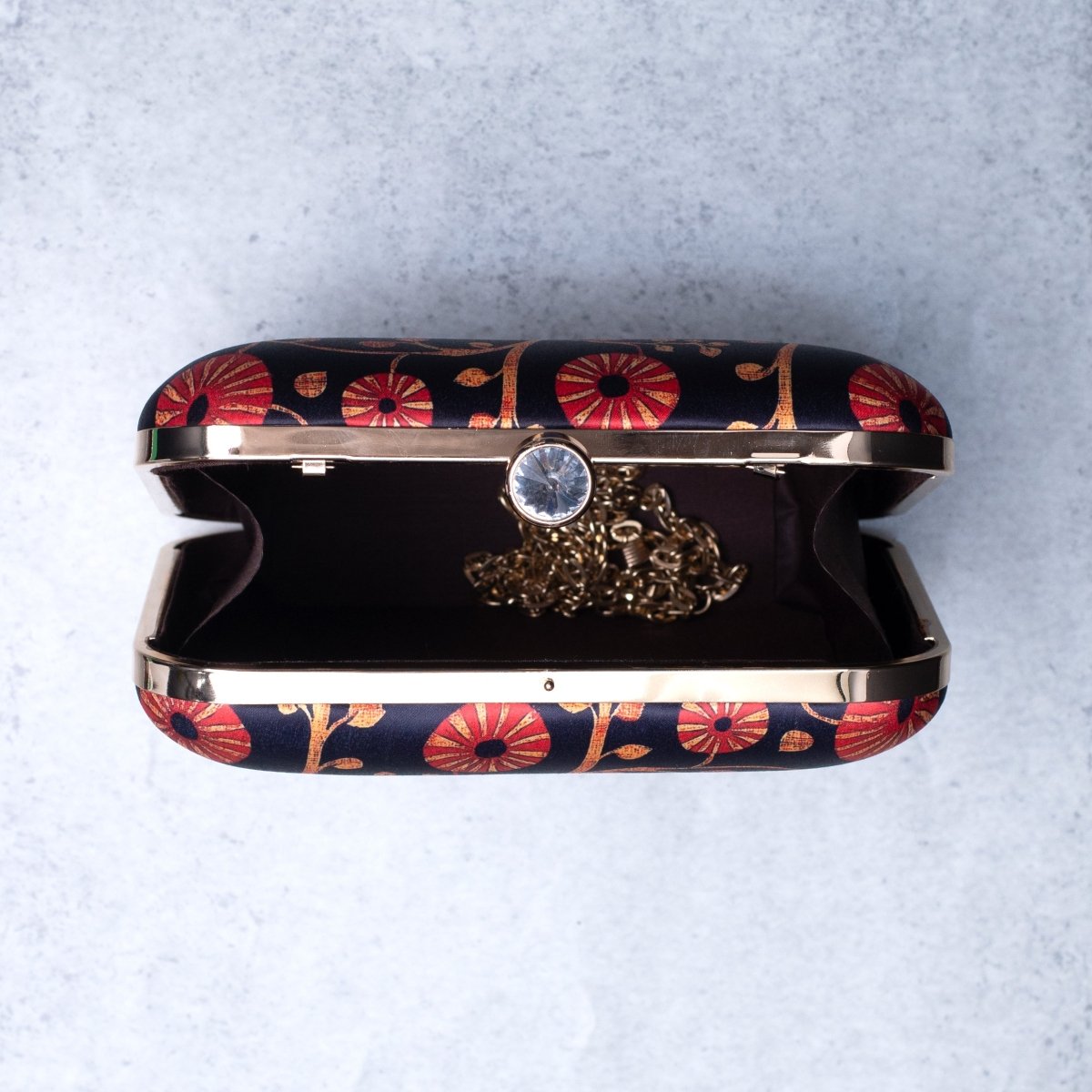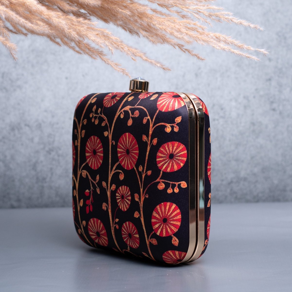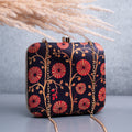 Artklim Black Based Red Floral Printed Clutch