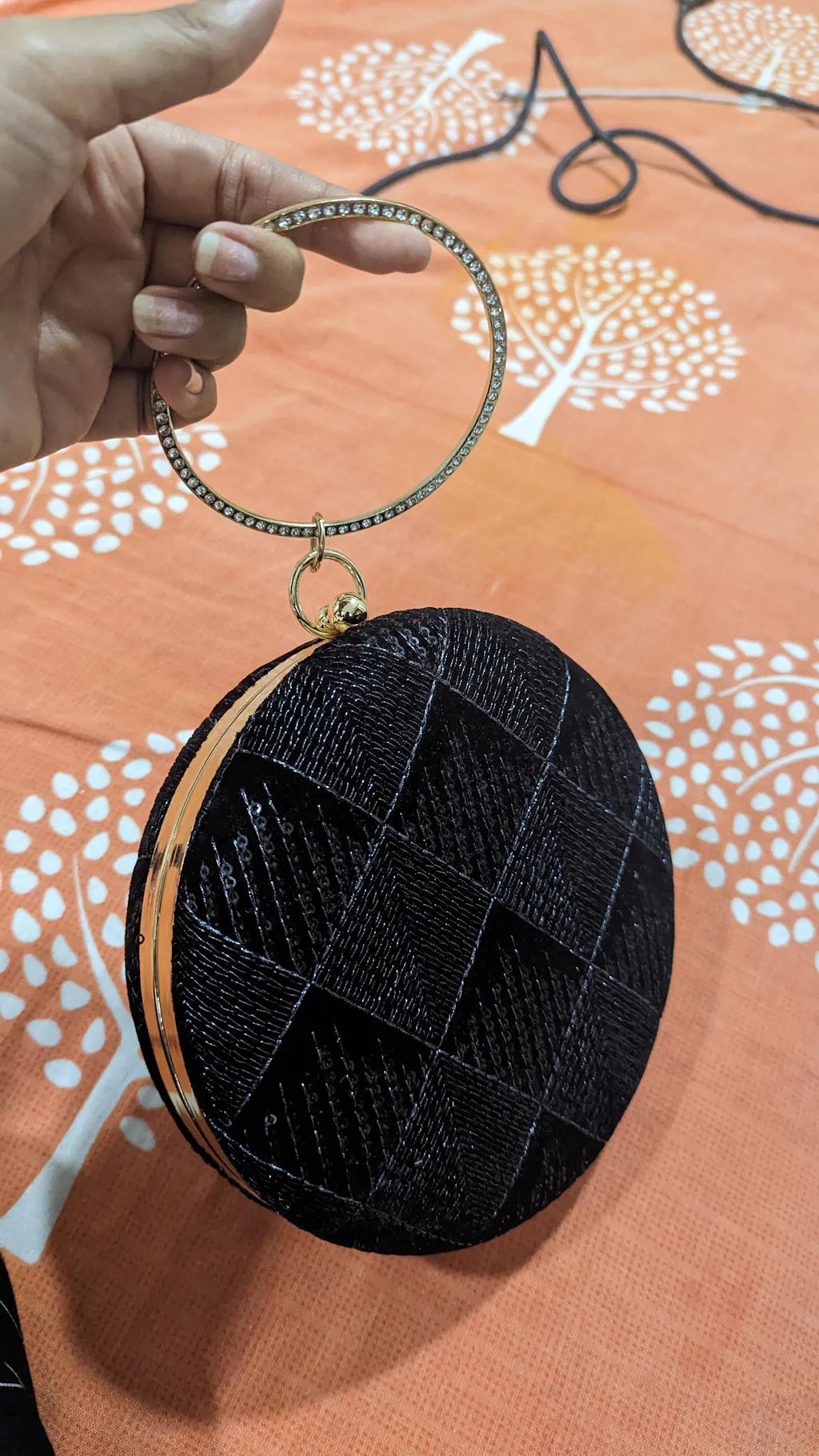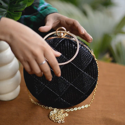 Artklim Black Embroidery Round Party Clutch