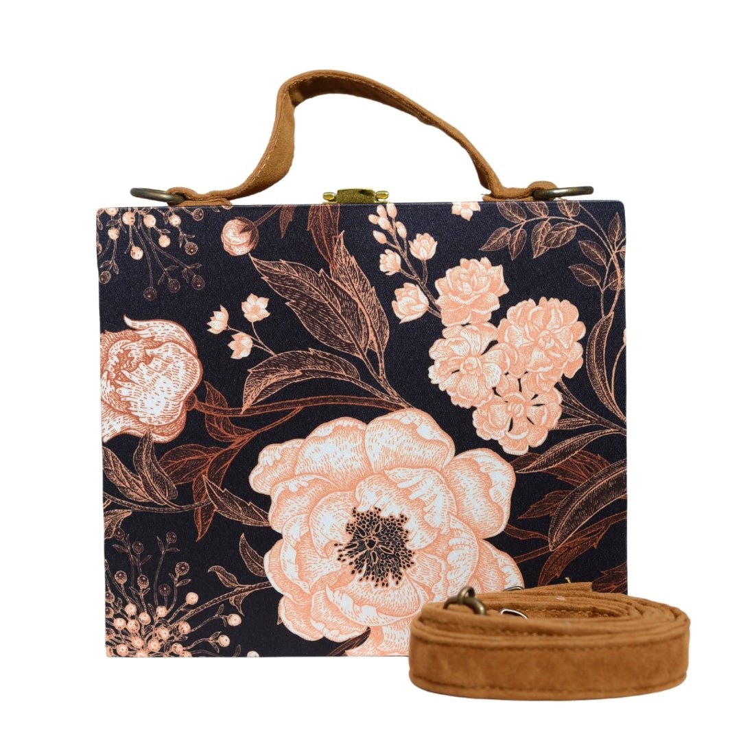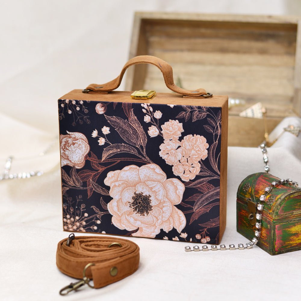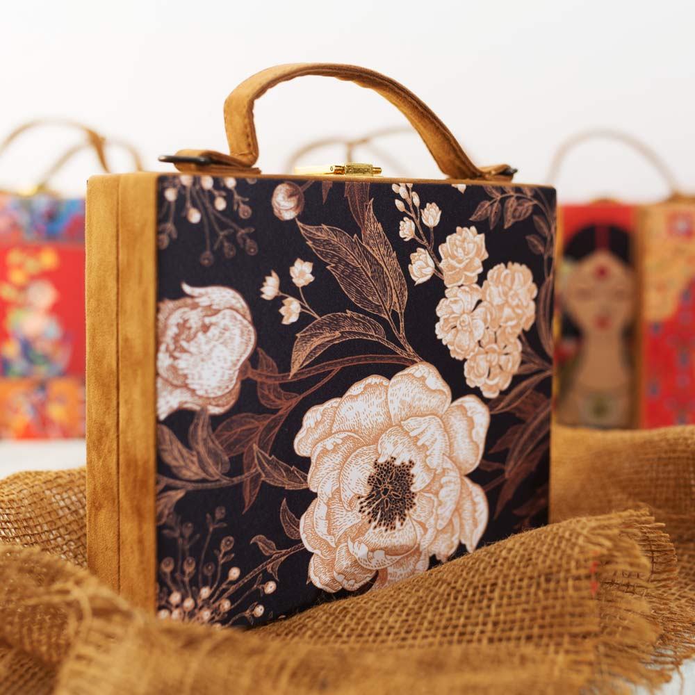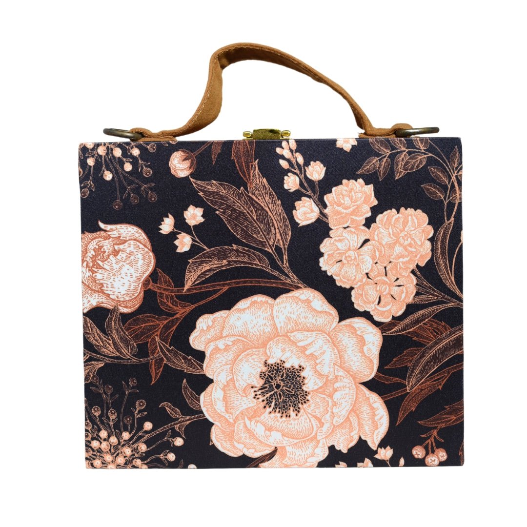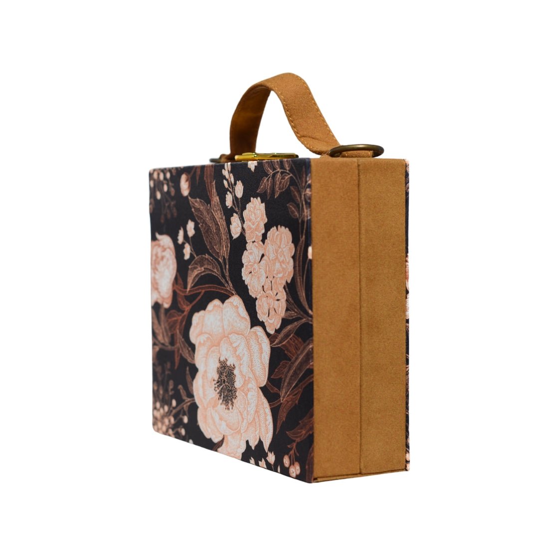 Artklim Black Floral Print Suitcase Style Clutch Bag