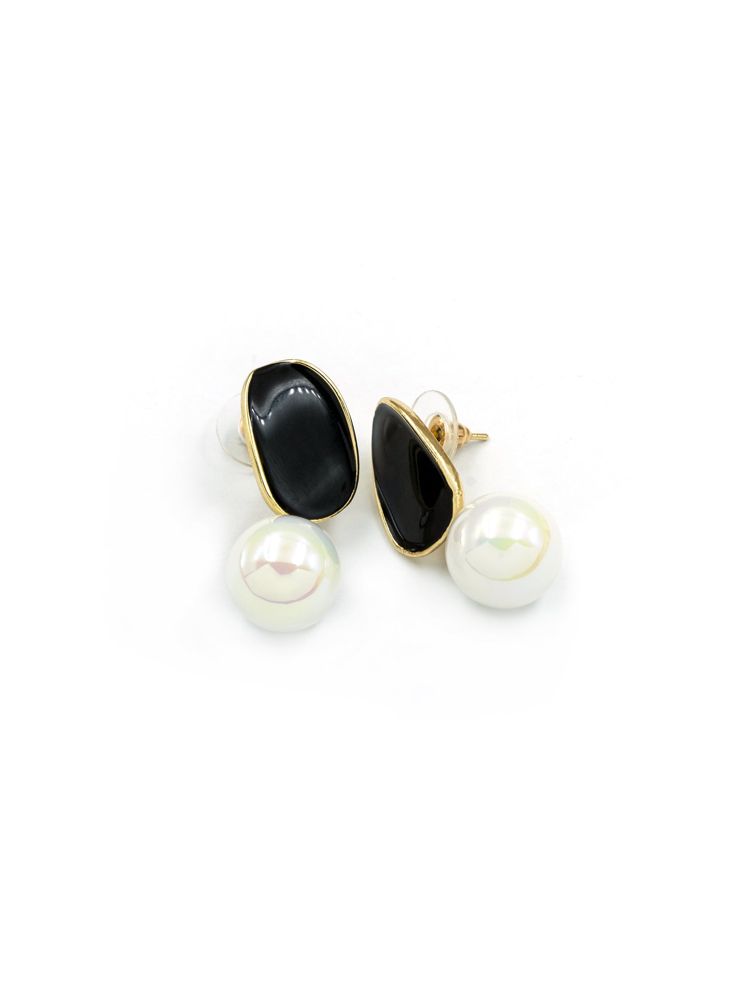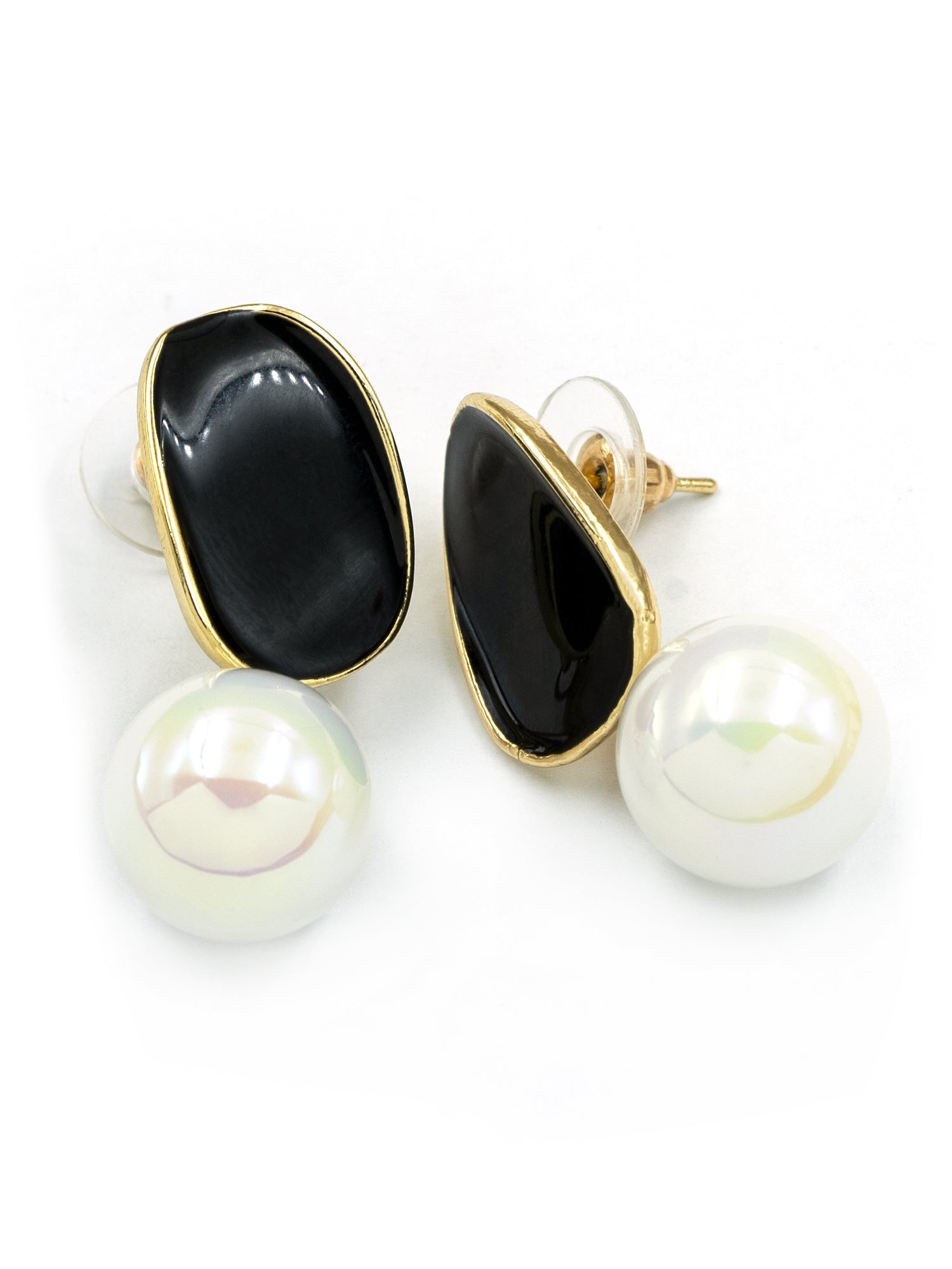 Artklim Black Pebble Pearl Drop Anti Tarnish Earrings