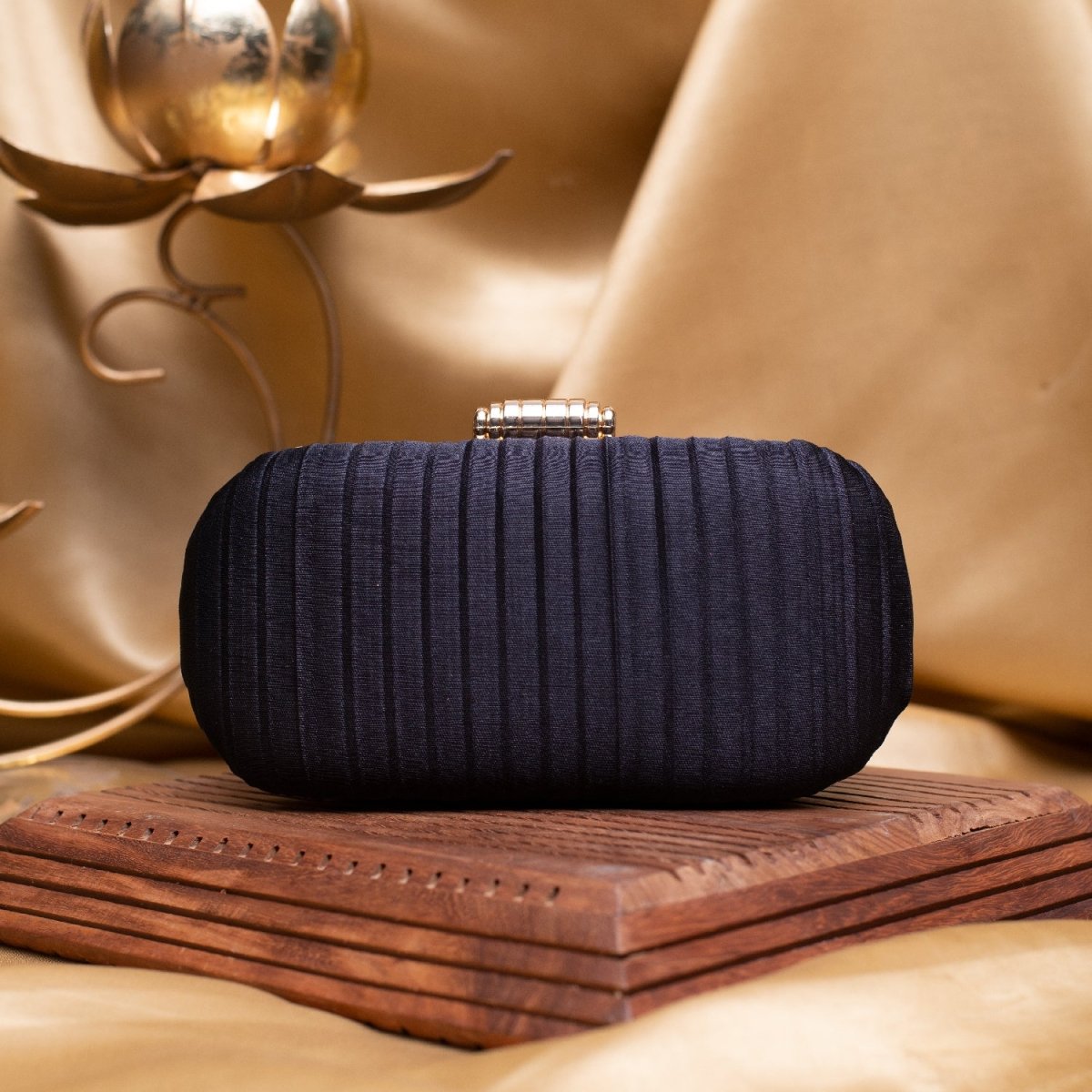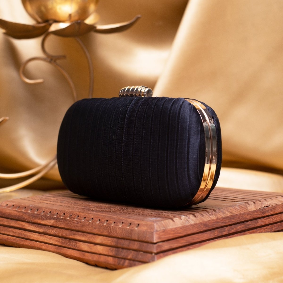 Artklim Black Ribbed Fabric Clutch