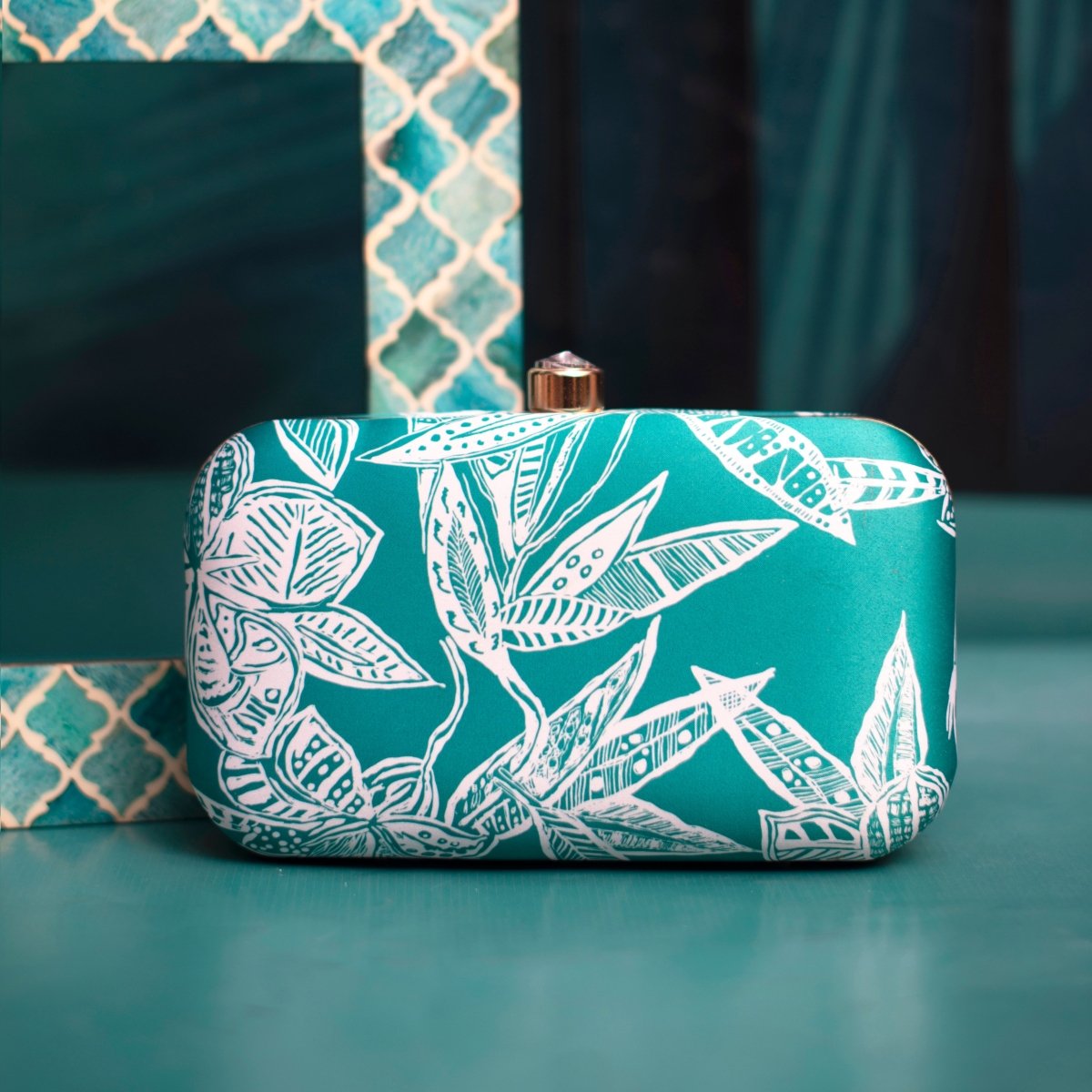 Artklim Blue And White Floral Printed Clutch