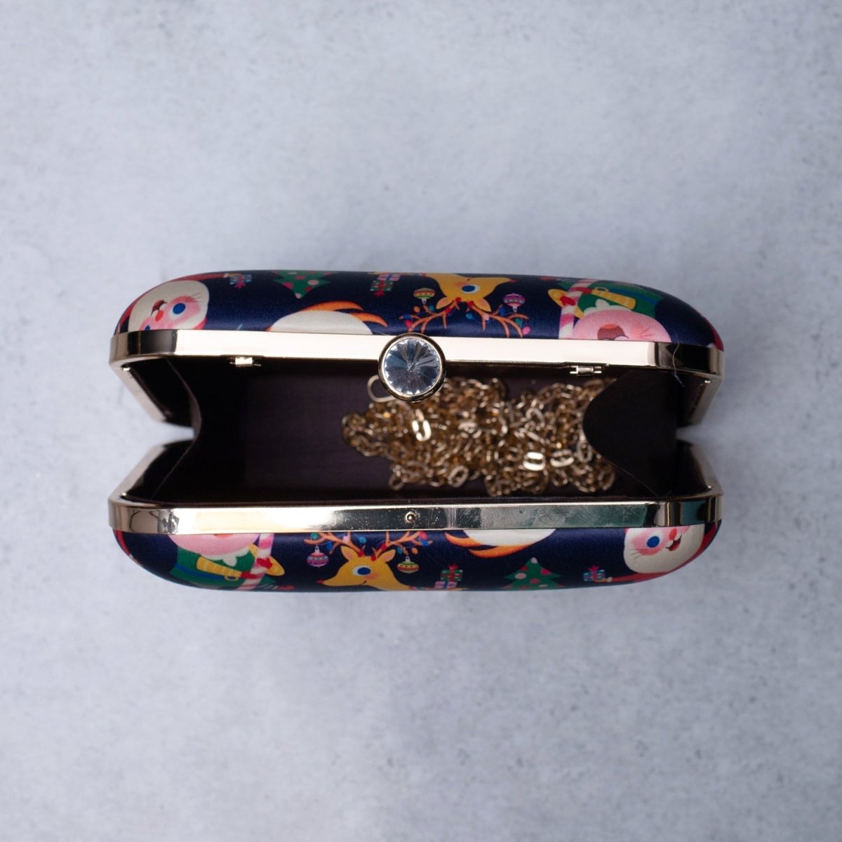 Artklim Blue Based Cute Santa Claus Printed Clutch