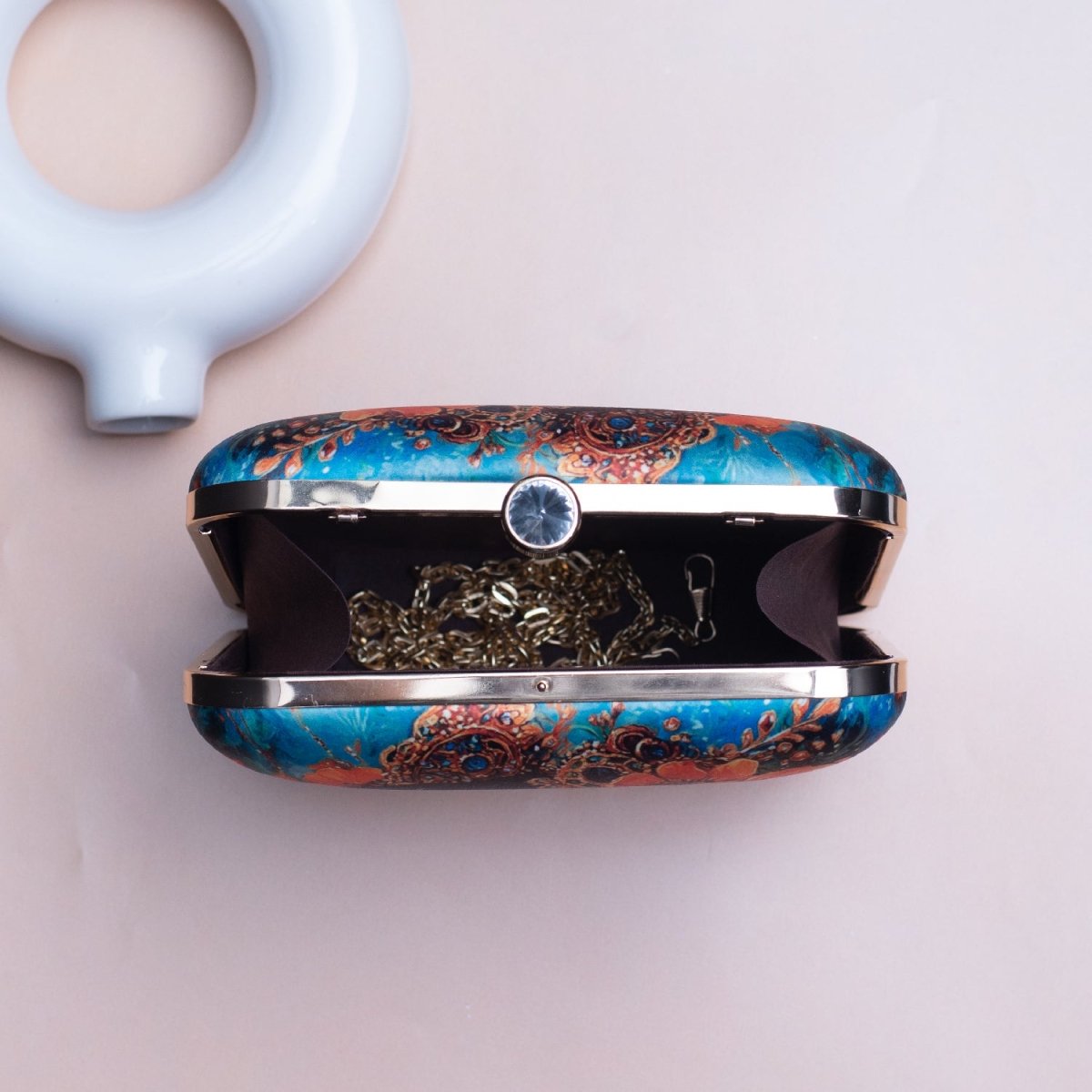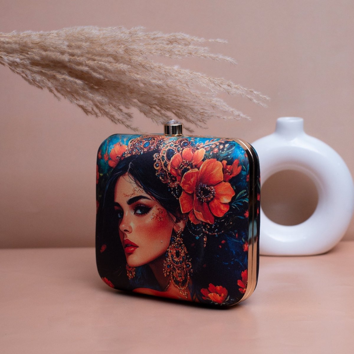 Artklim Blue Based Floral Women Portrait Printed Clutch