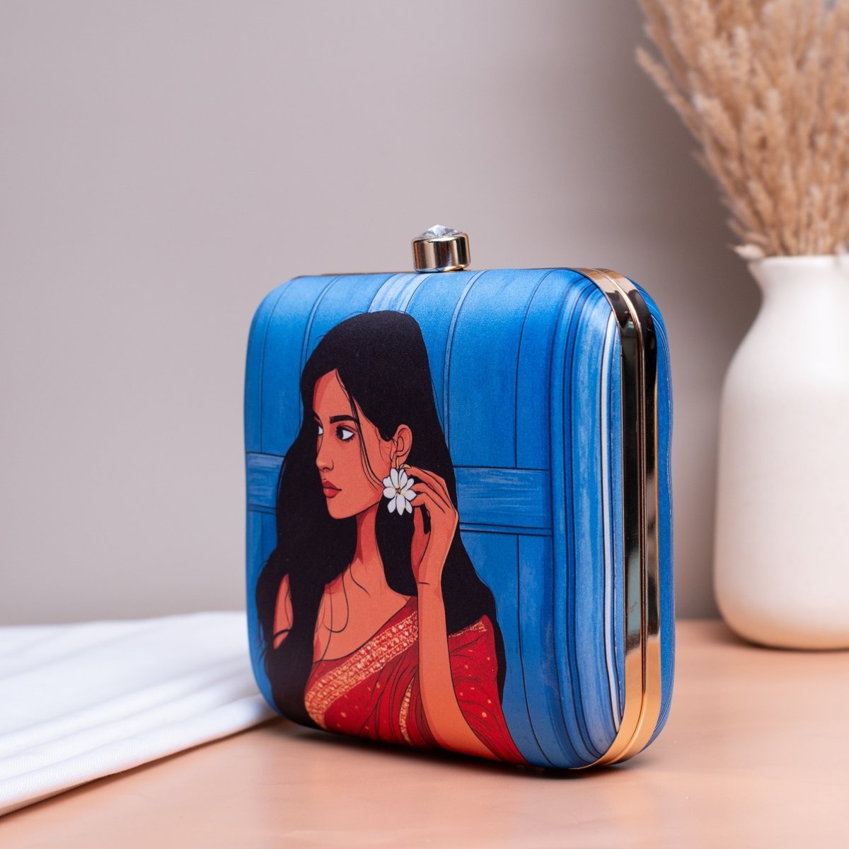 Artklim Blue Based Girl Portrait Printed Clutch