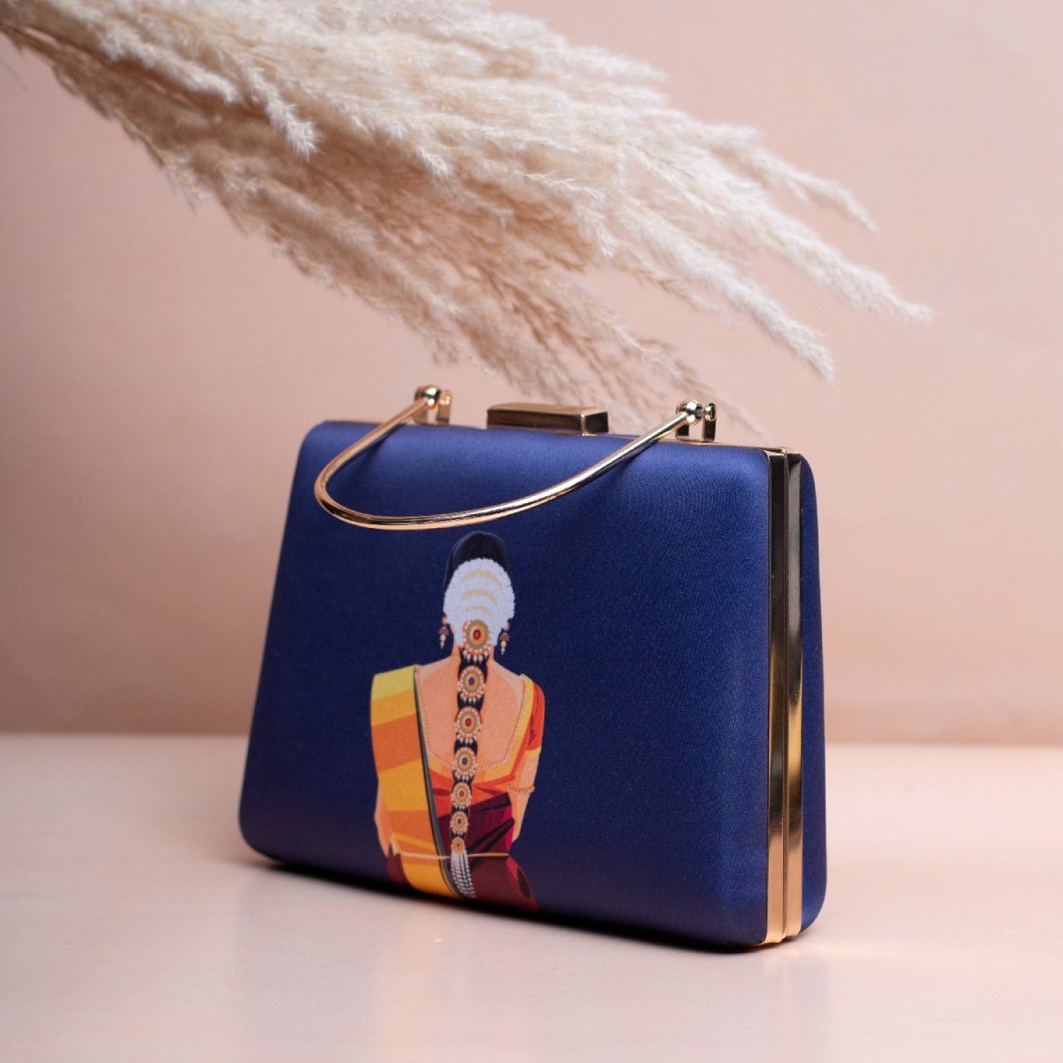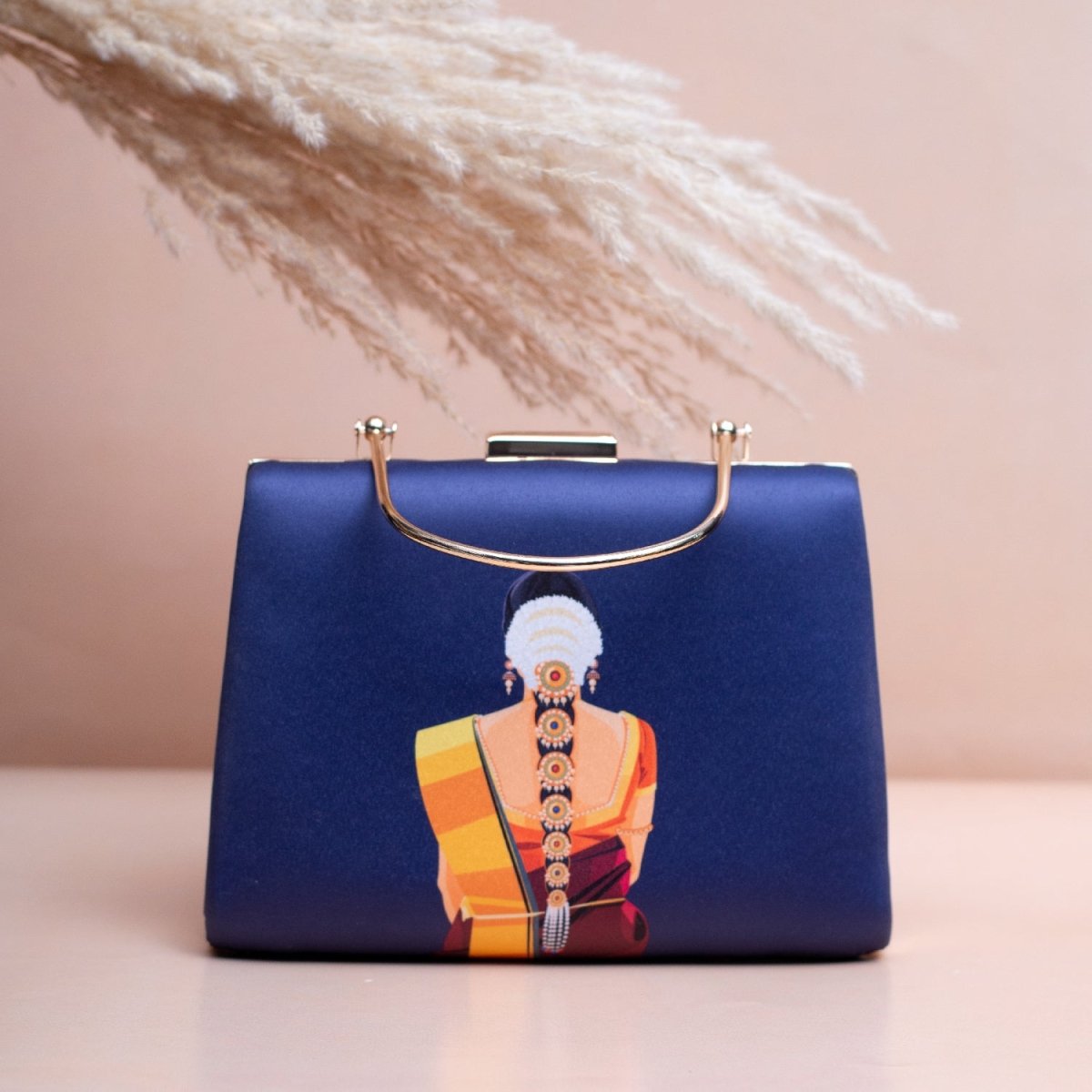 Artklim Blue Based South Indian Bride Portrait Printed Clutch
