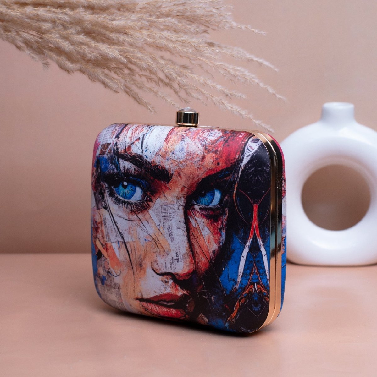 Artklim Blue Eyes Women Portrait Printed Clutch