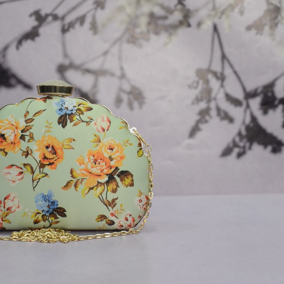 Artklim Blue Floral Printed D-shape Clutch