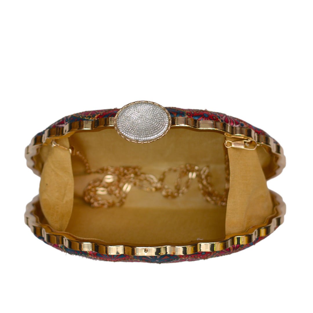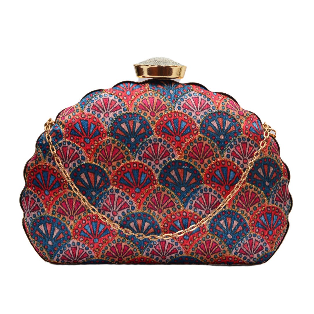 Artklim Bright Pink and Blue Traditional Print Clutch