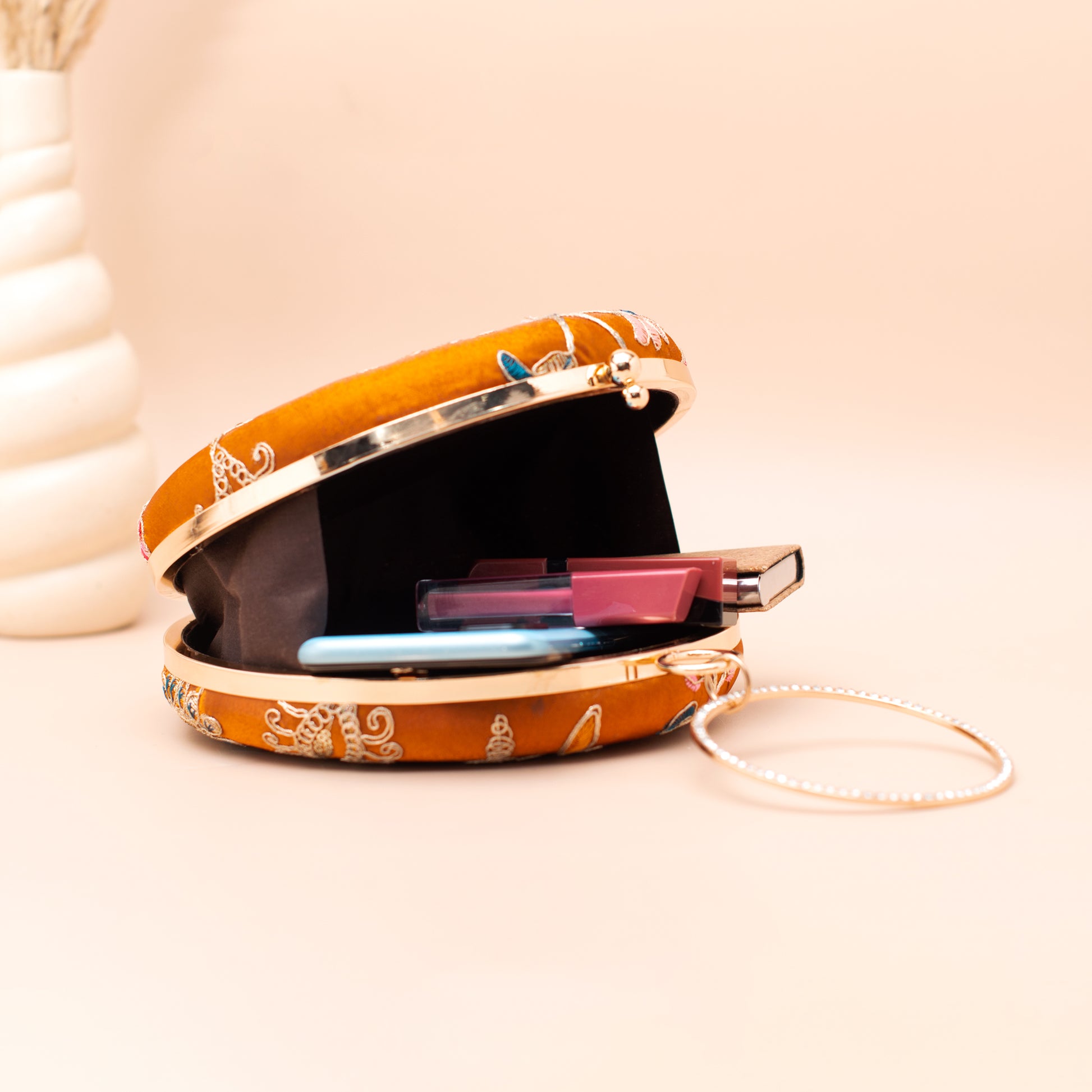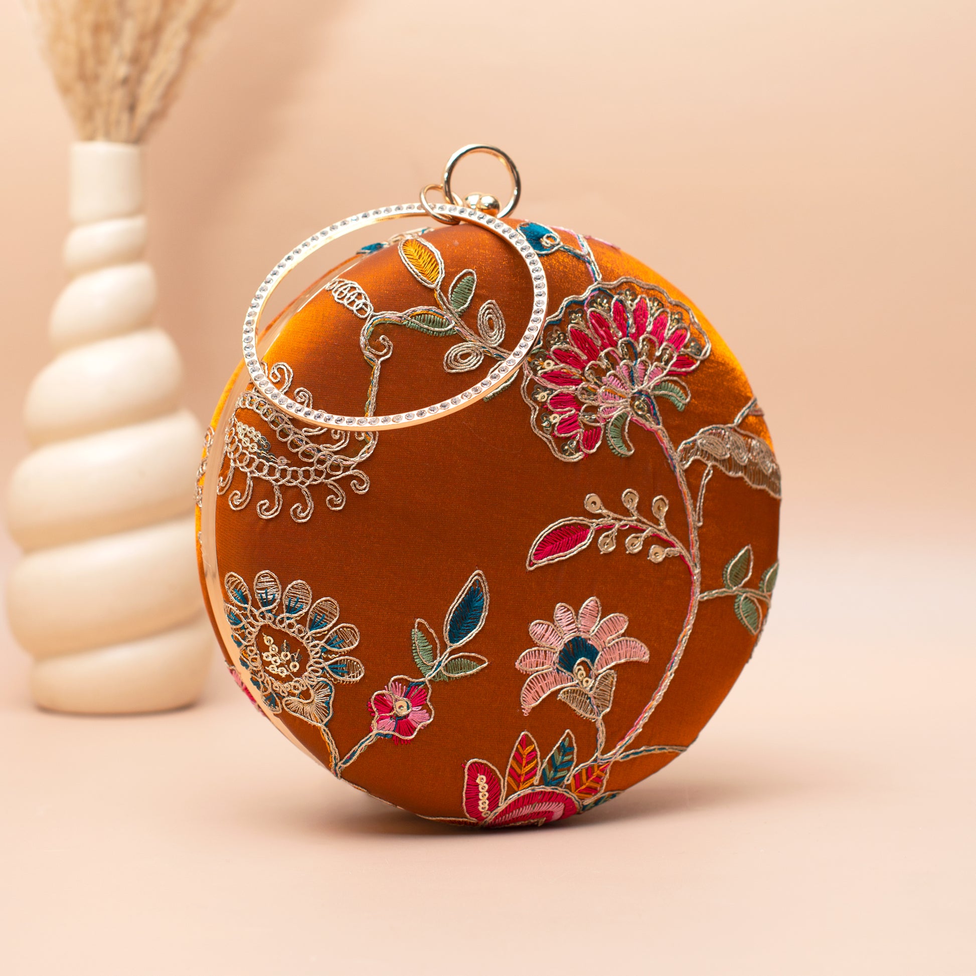 Artklim Burnt Orange Floral Embroidered Clutch