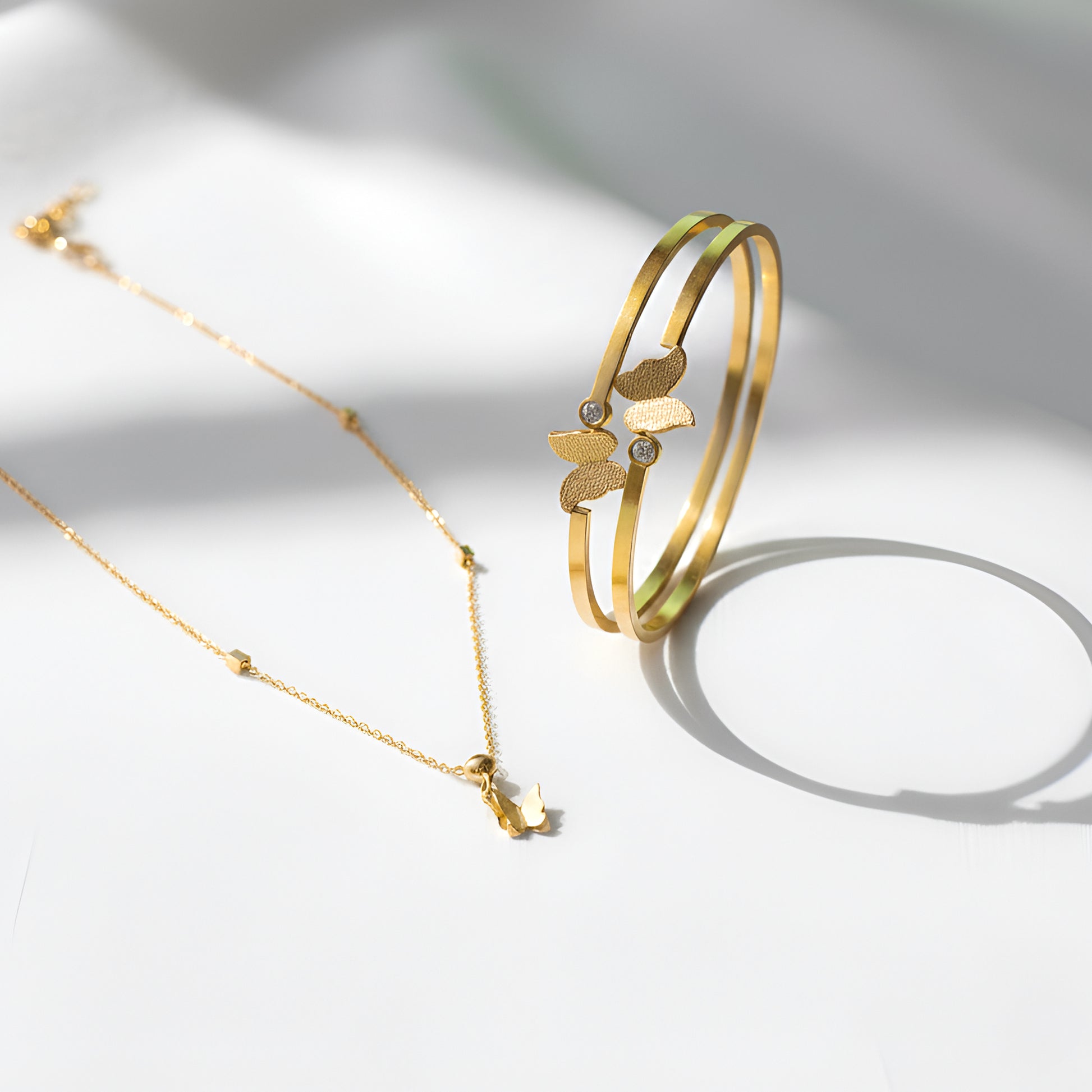Artklim Butterfly Anti Tarnish Bangle & Pendant Necklace Set
