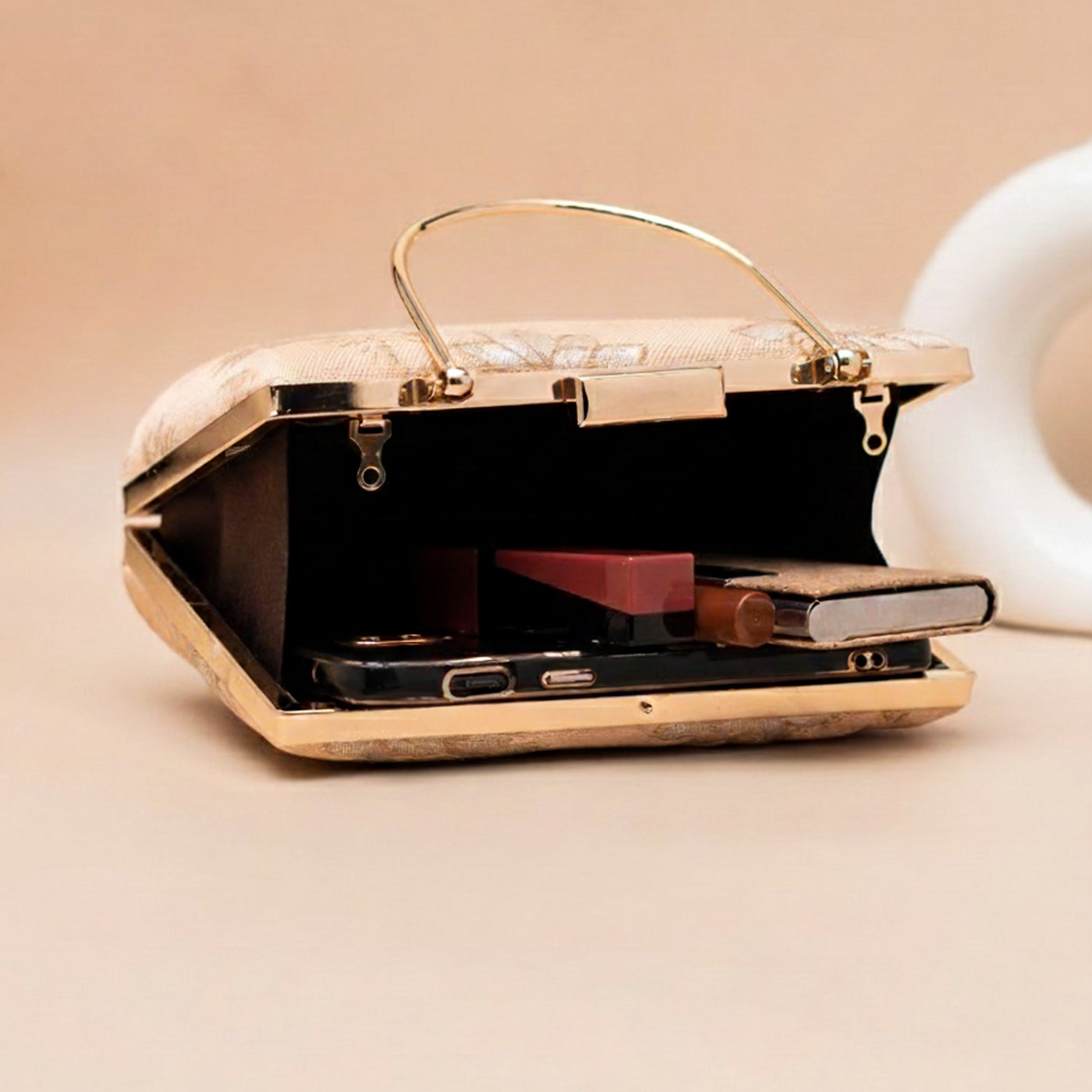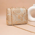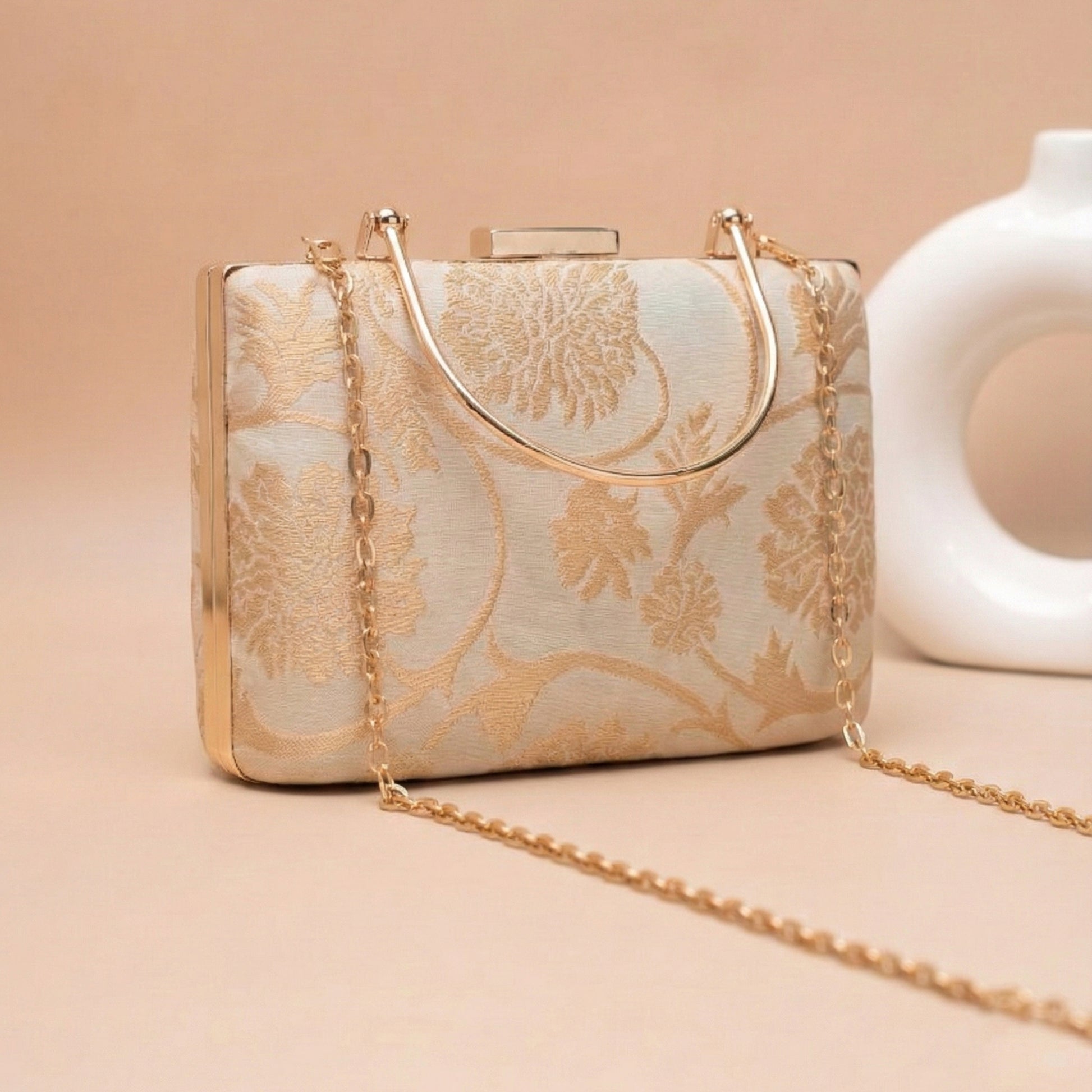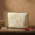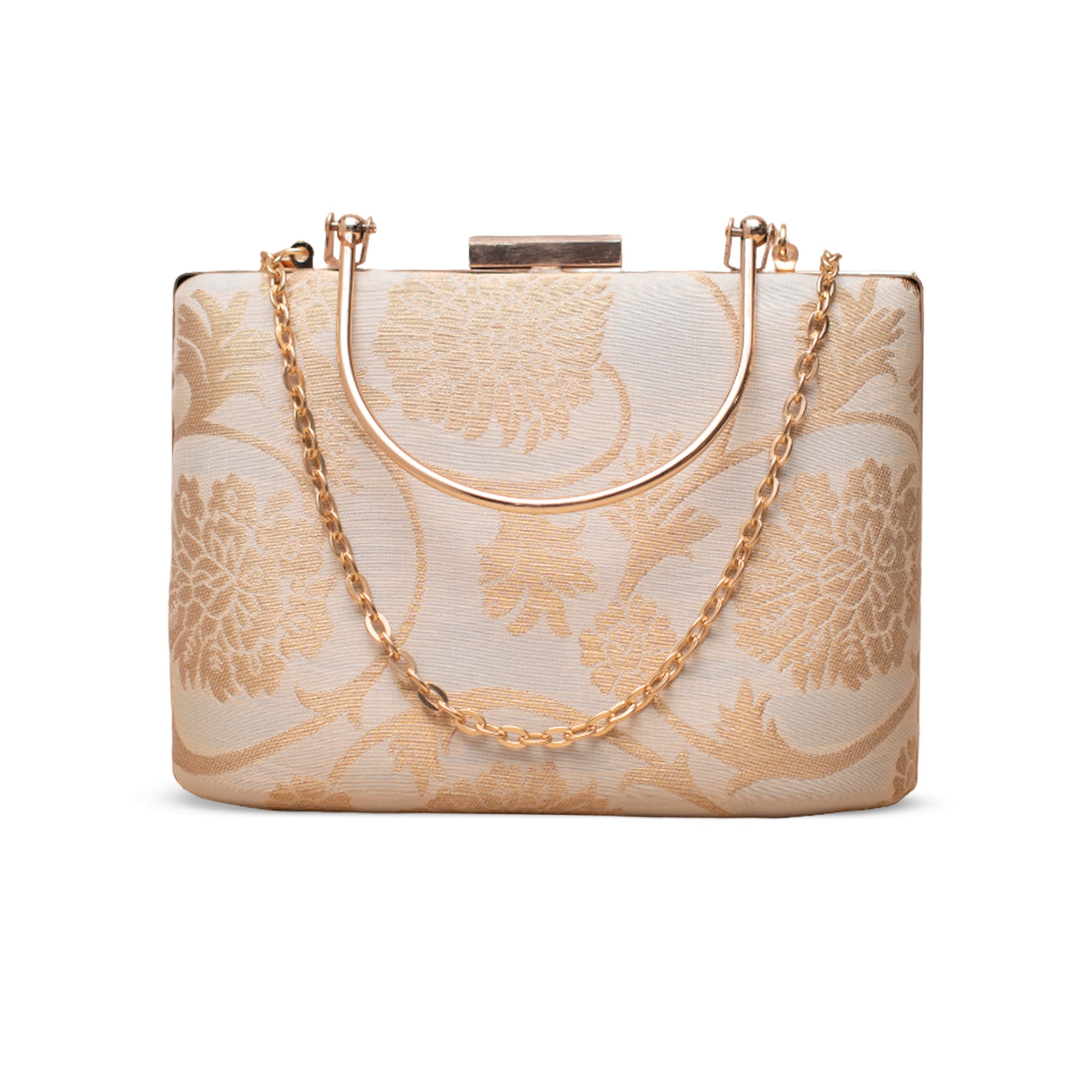Artklim Champagne Ivory Gold Floral Embroidered Clutch