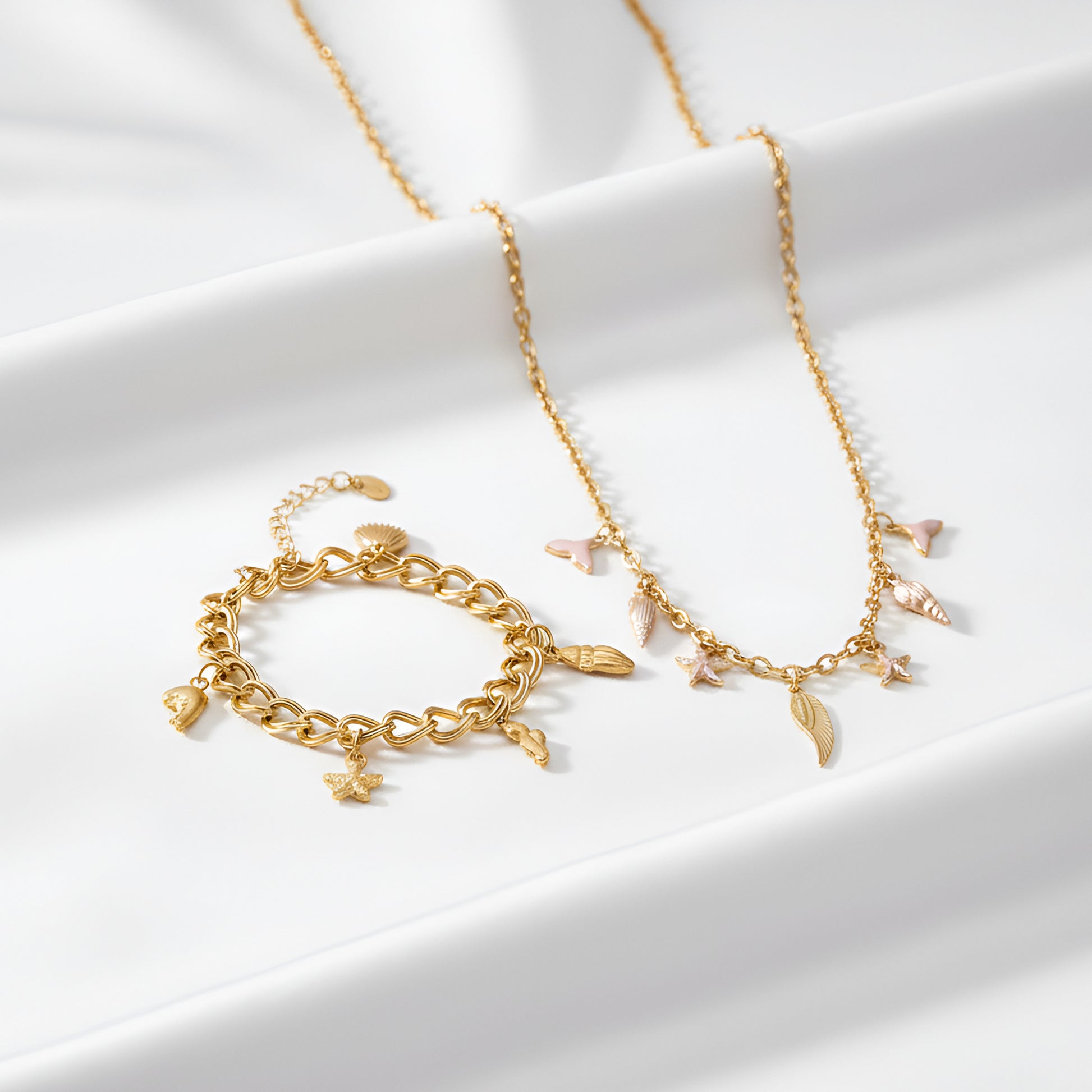 Artklim Charm Anti Tarnish Bracelet & Butterfly Necklace Set