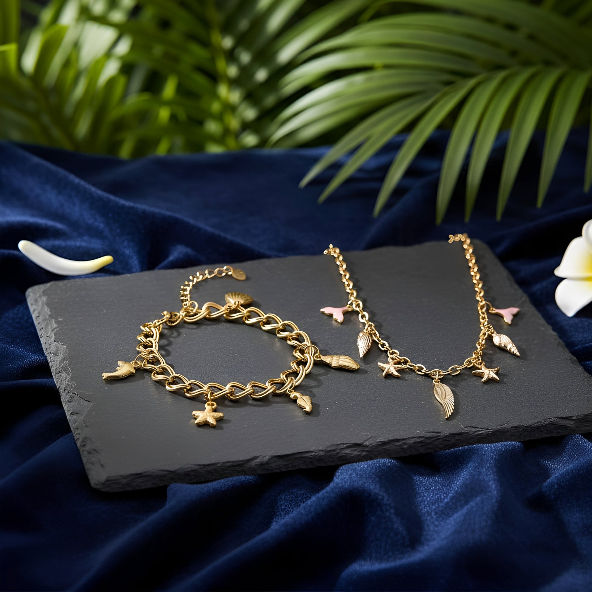Elevate your style with our exquisitely crafted gold-plated jewellery set with Bracelet and pendant — a timeless accessory designed to complement every look.
