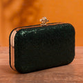 Artklim Dark Green Based Sequins Embrodiery Clutch