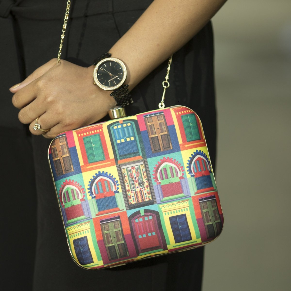 Artklim Doors Printed Clutch Bag