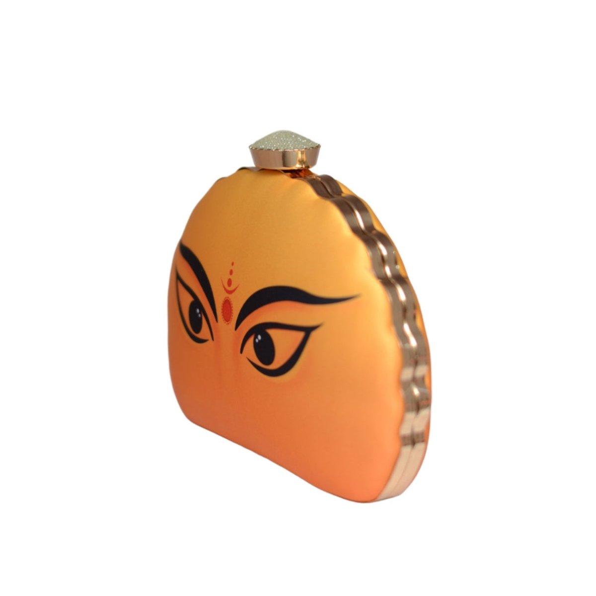 Artklim Durga Eyes Yellow Printed D-Shape Clutch