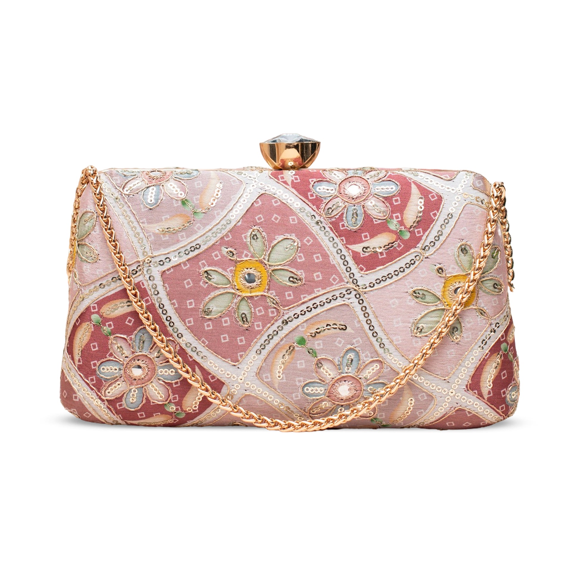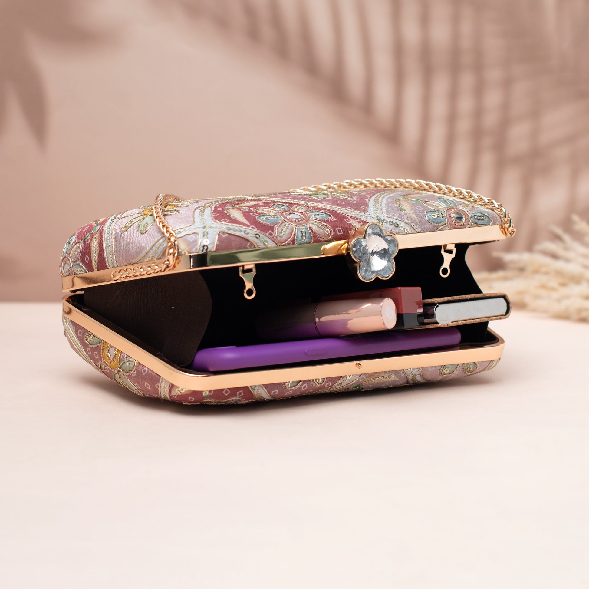 Artklim Dusty Rose & Maroon Patchwork Clutch