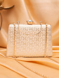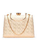 Artklim Elegant Beige-Gold Geometric Floral Evening Bag