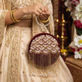 Artklim Elegant Floral Pearl Handcrafted Embroidered Round Clutch