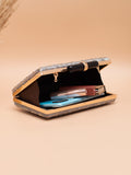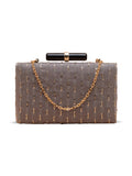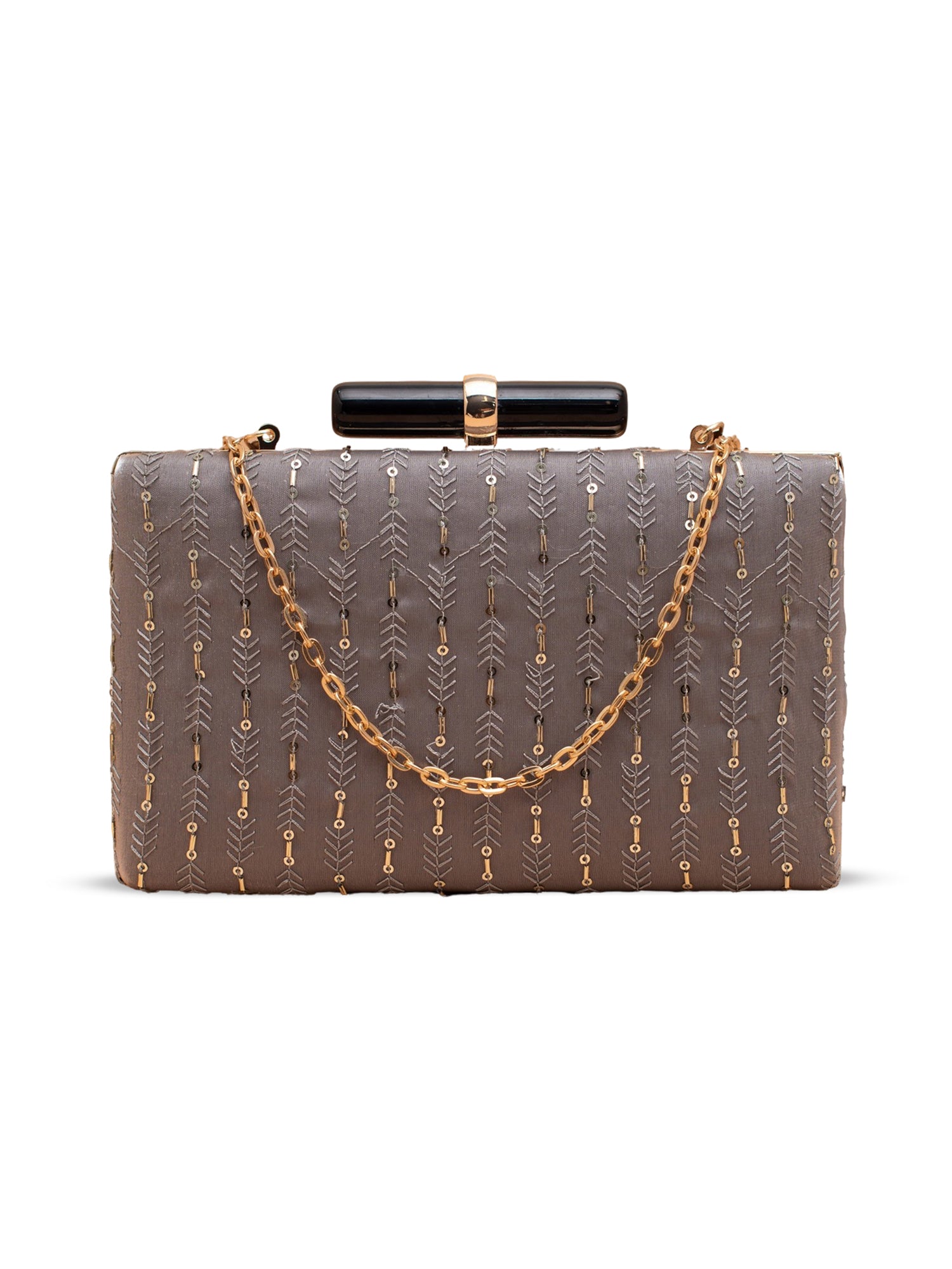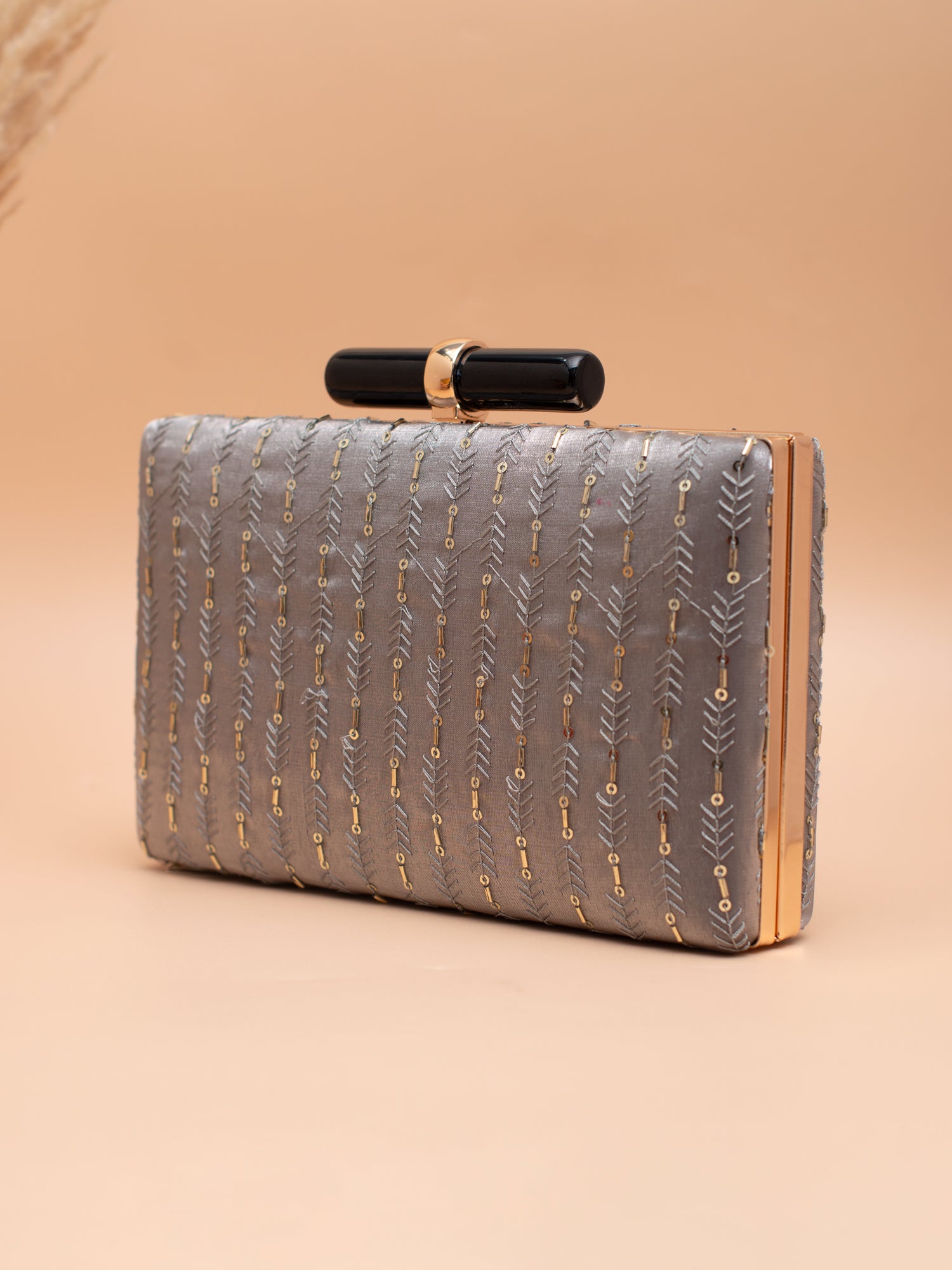 Artklim Elegant Grey Embroidered Clutch with Golden Sling