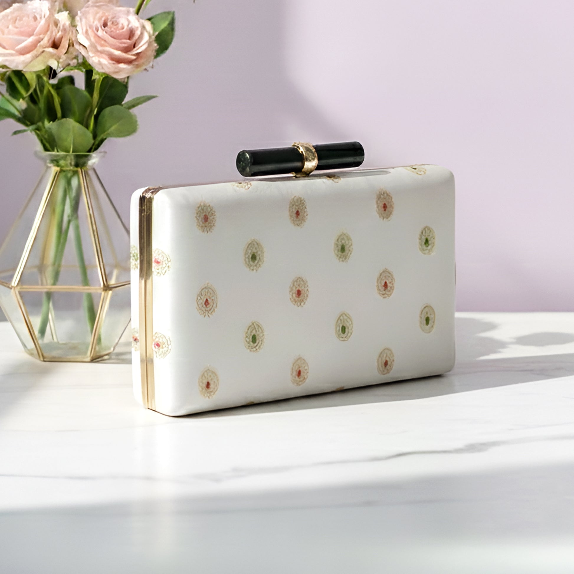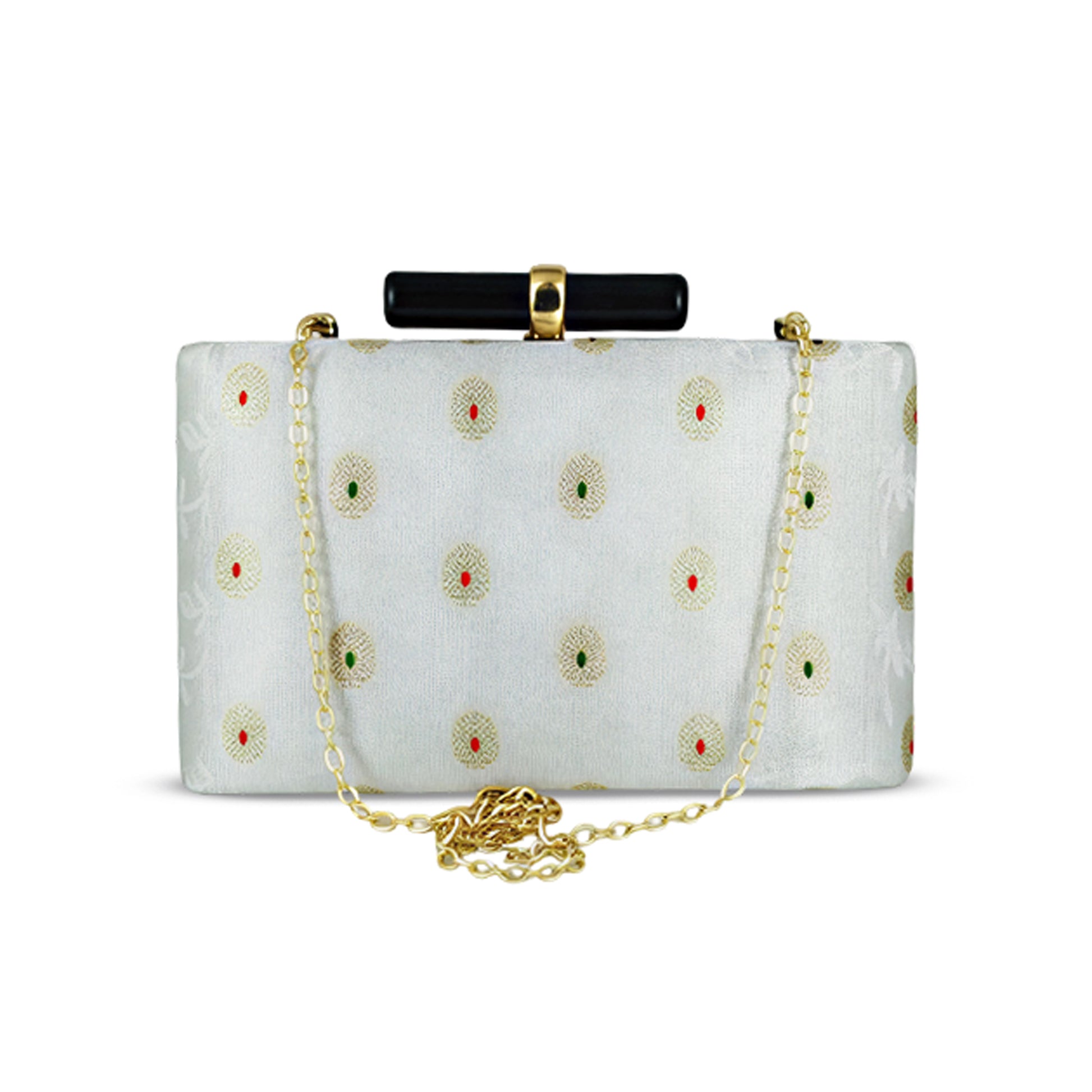Artklim Elegant Ivory Ethnic Embroidered Clutch