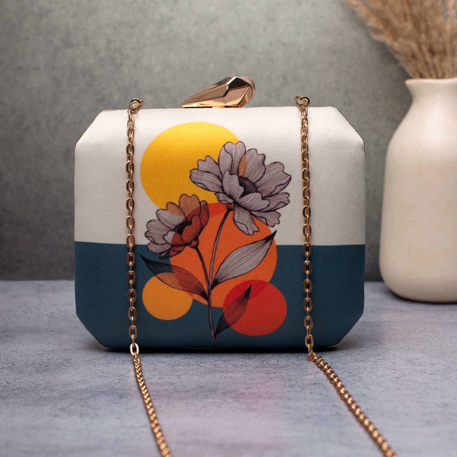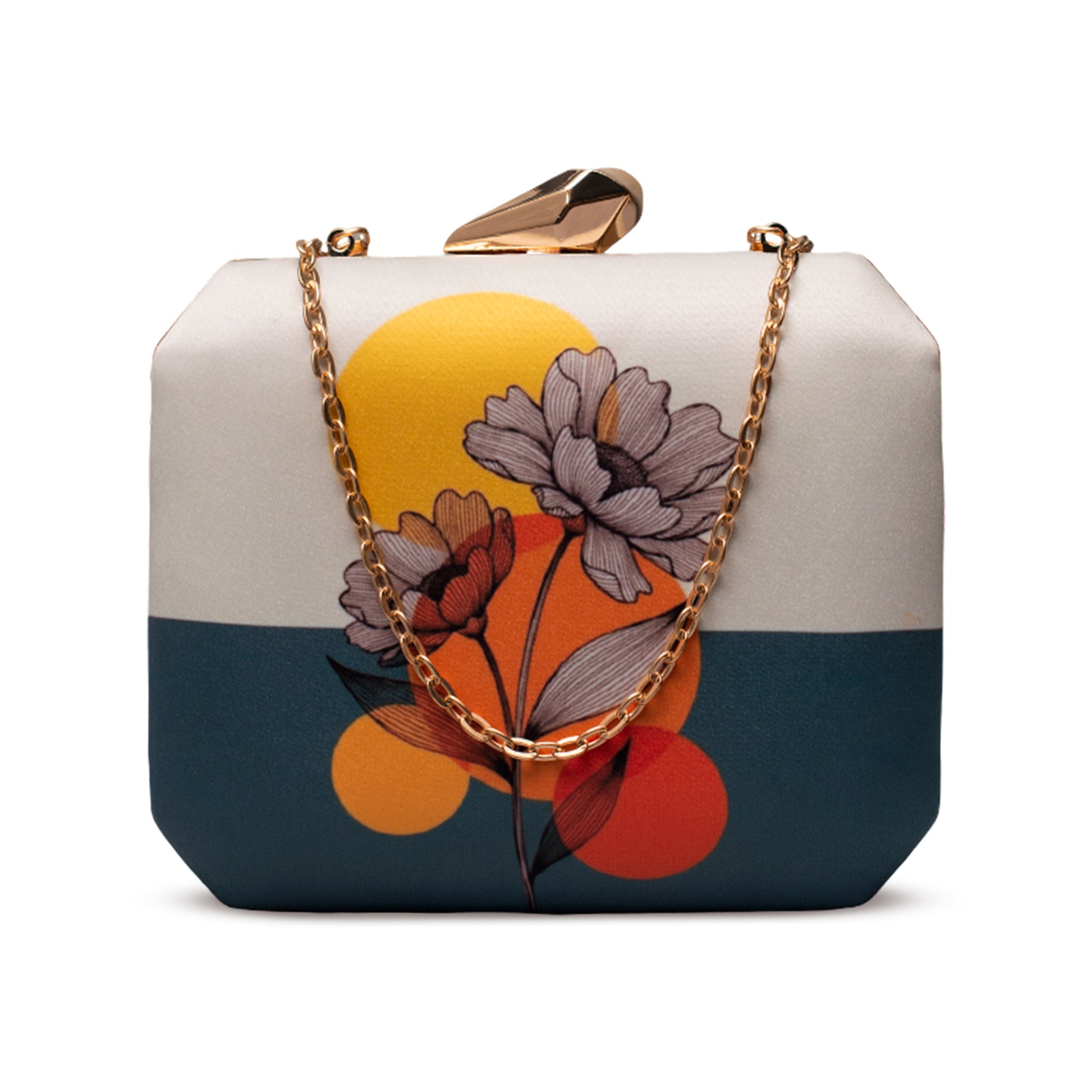 Add a burst of personality to every outing with these handcrafted clutches. Designed to blend fashion and art, each piece is a mini canvas—printed with vibrant illustrations, finished with a luxe hard-case body, and accented with a gleaming gold clasp and chain.