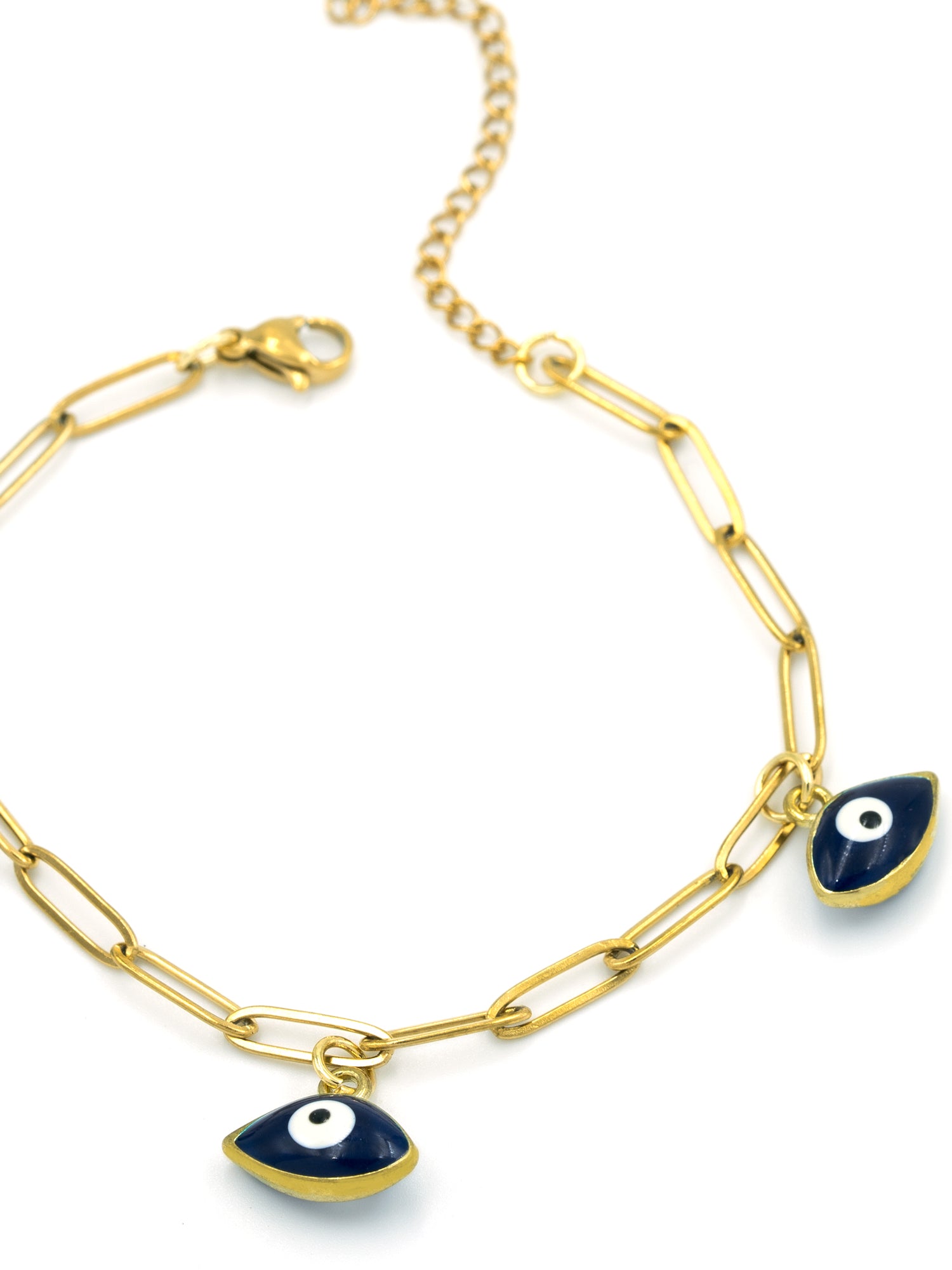 Artklim Gold Plated Anti Tarnish Blue Evil Eye Chain Bracelet
