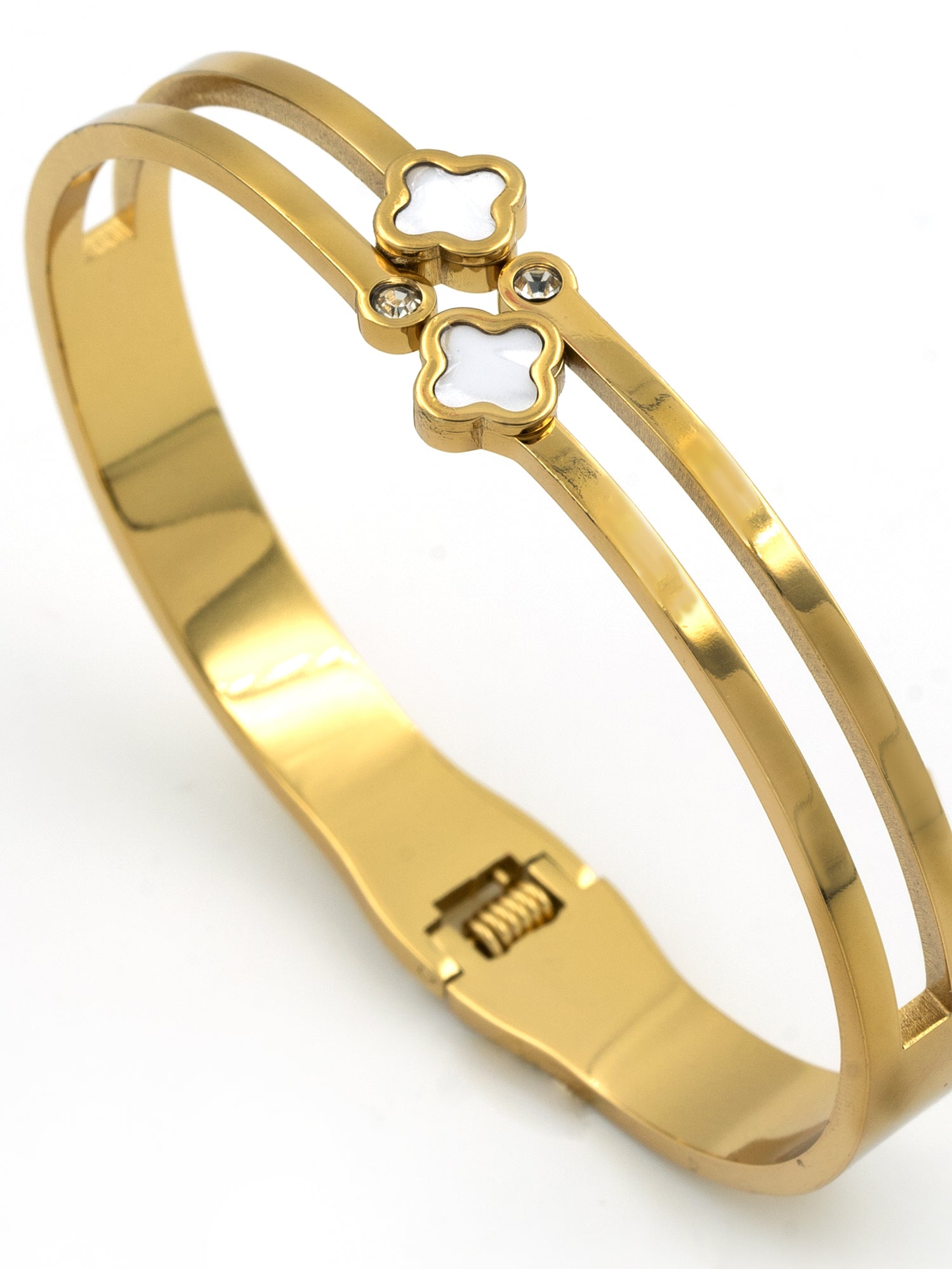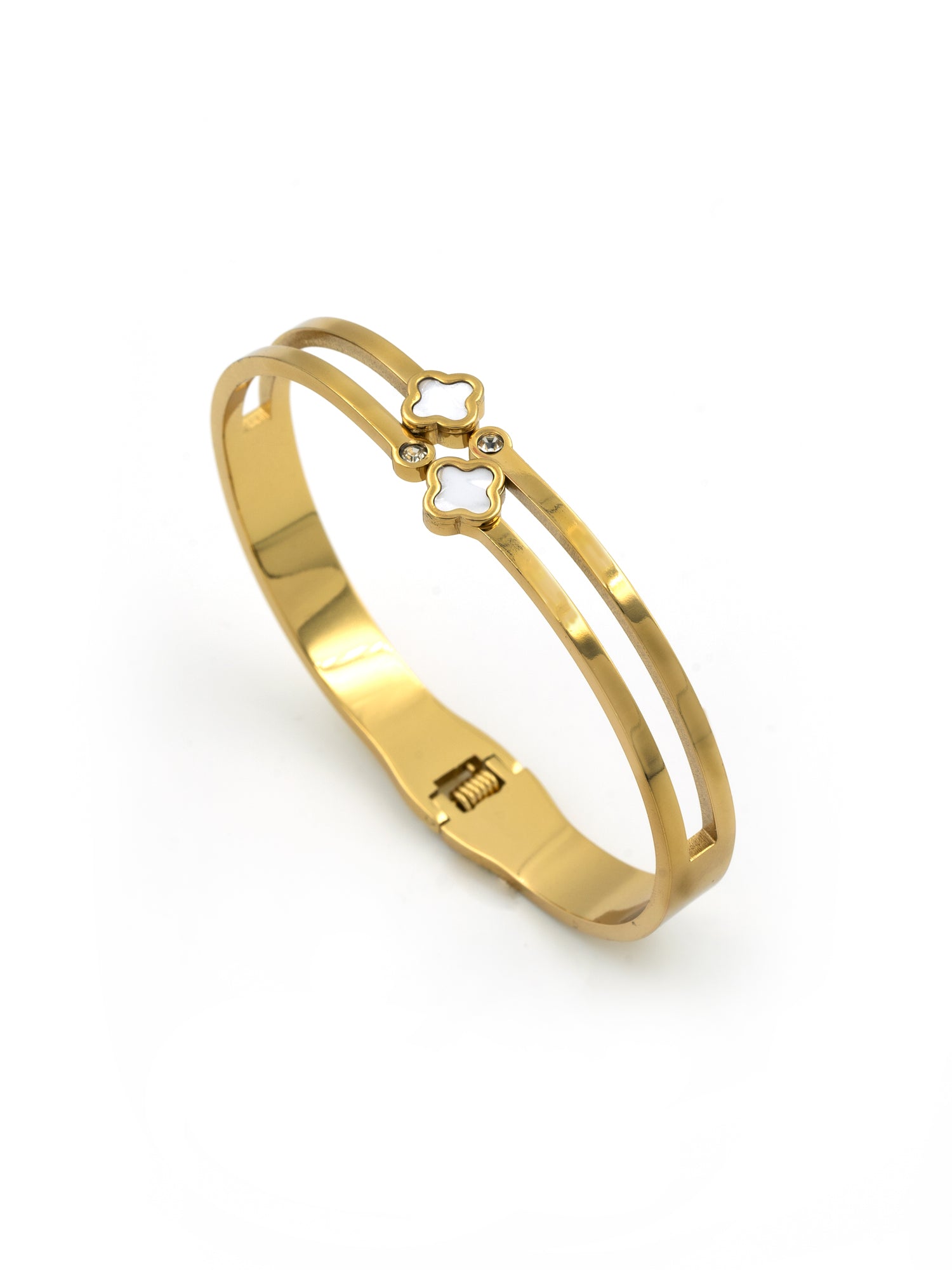 Artklim Gold Plated Anti Tarnish Golden Clover Cuff Bracelet