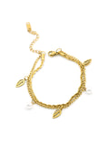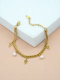Artklim Gold Plated Anti Tarnish Golden Leaf & Pearl Charm Bracelet