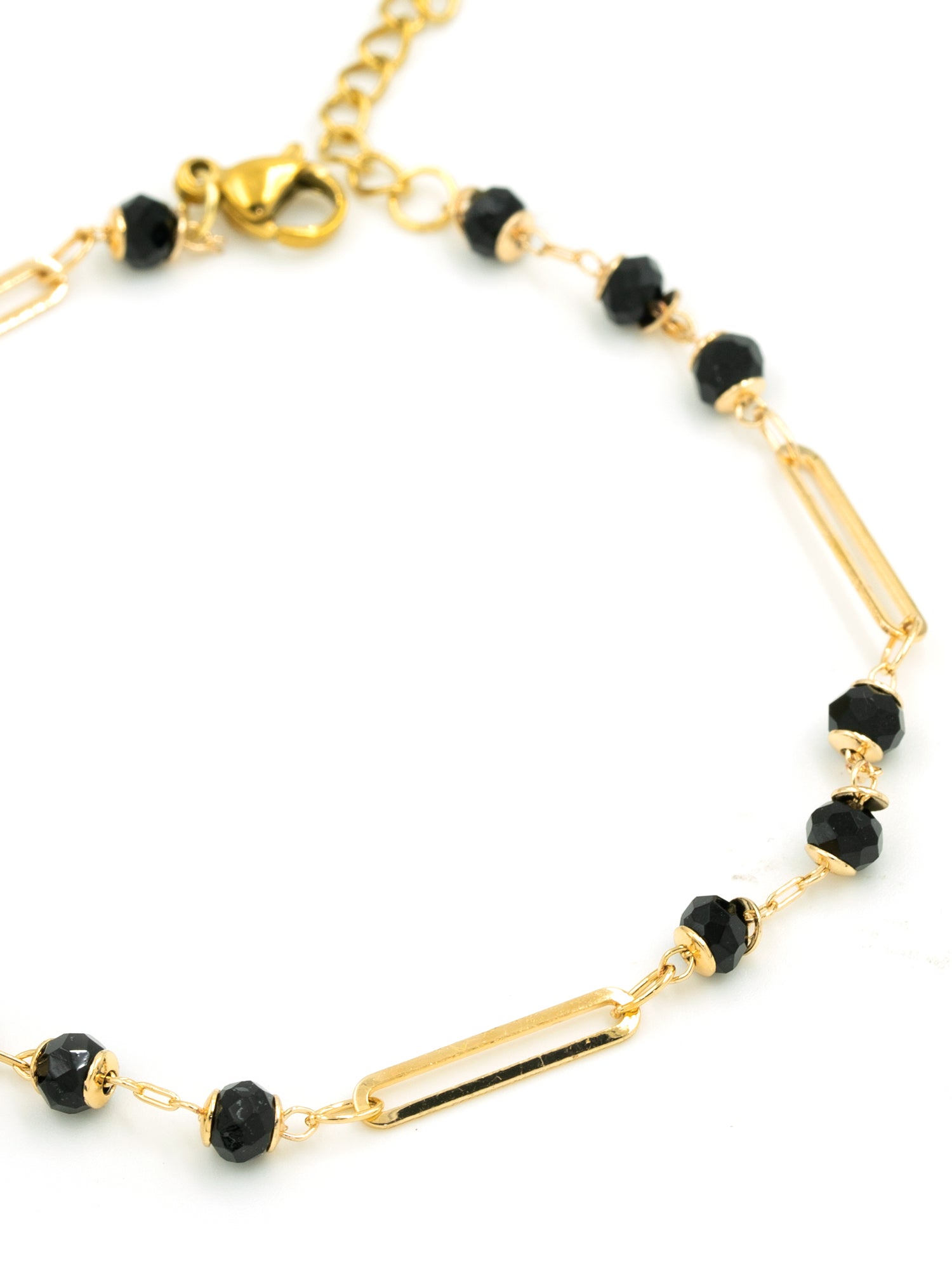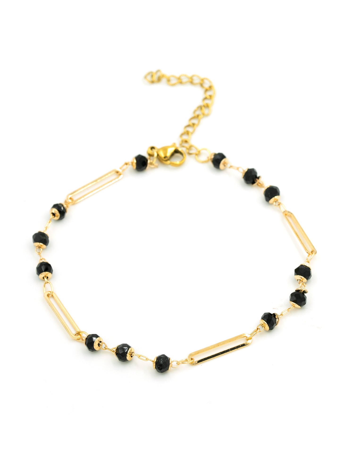 Artklim Gold Plated Black Crystal Link Anti Tarnish Anklet