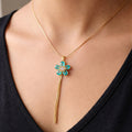 Artklim Gold-Plated Blue Crystal Flower Lariat Anti-Tarnish Pendant Necklace
