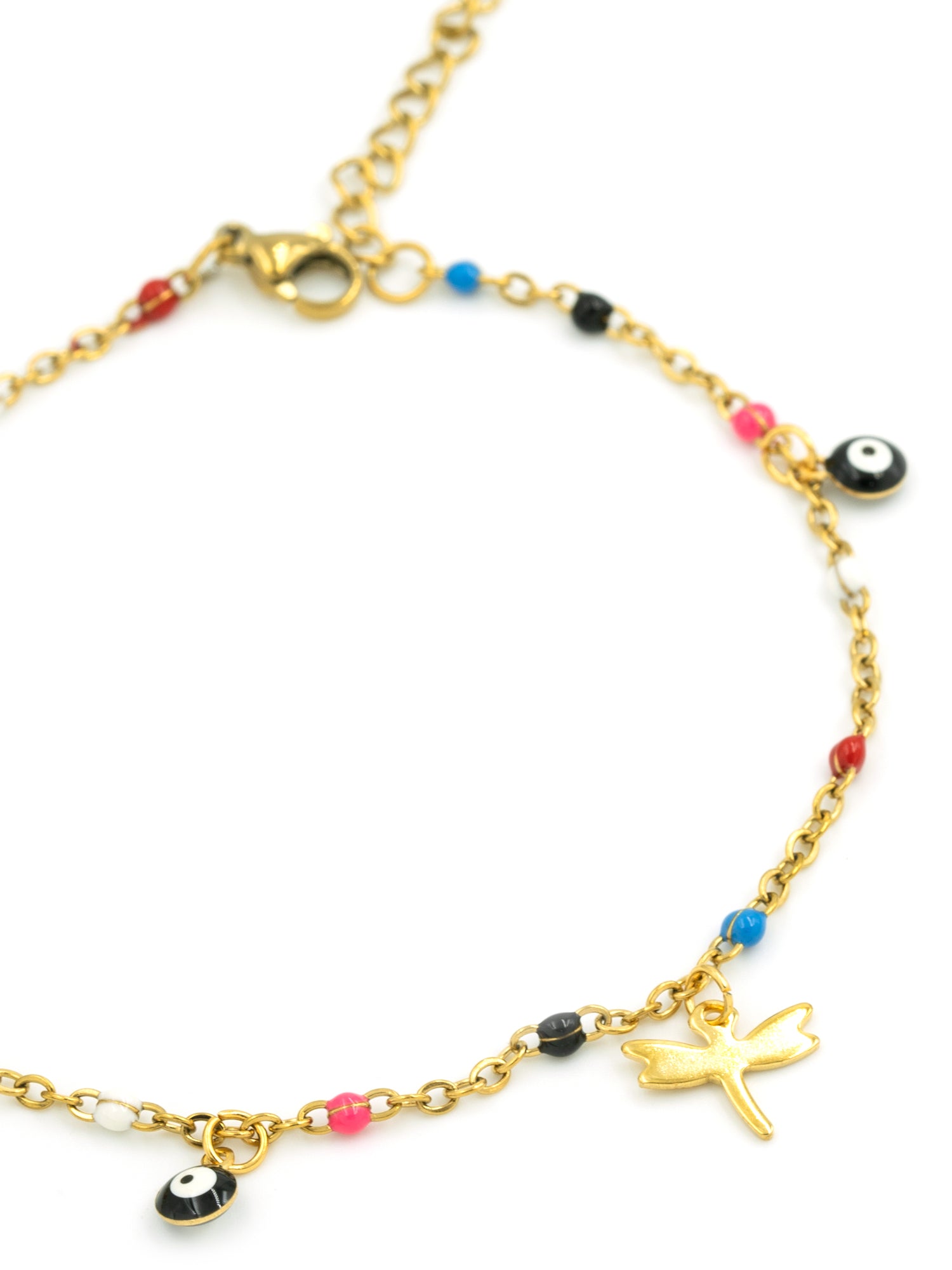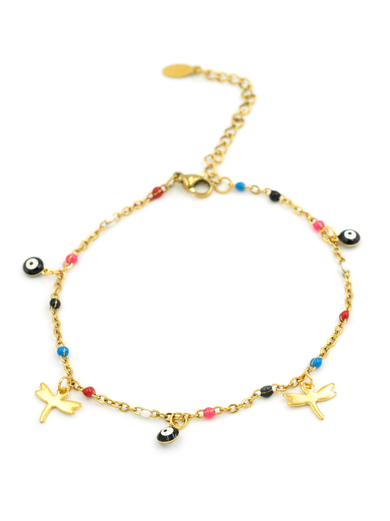 Artklim Gold Plated Butterfly Evil Eye Beaded Anti Tarnish Anklet